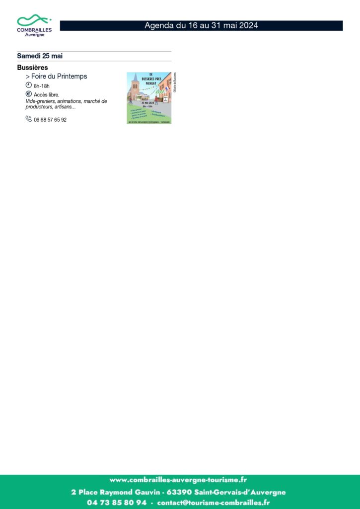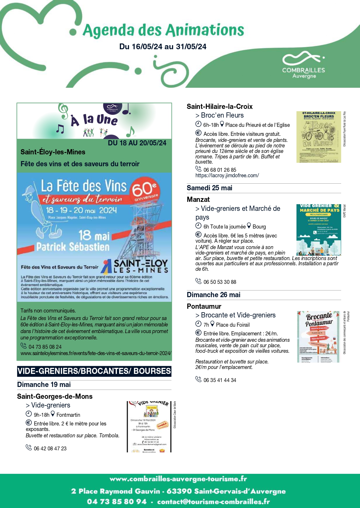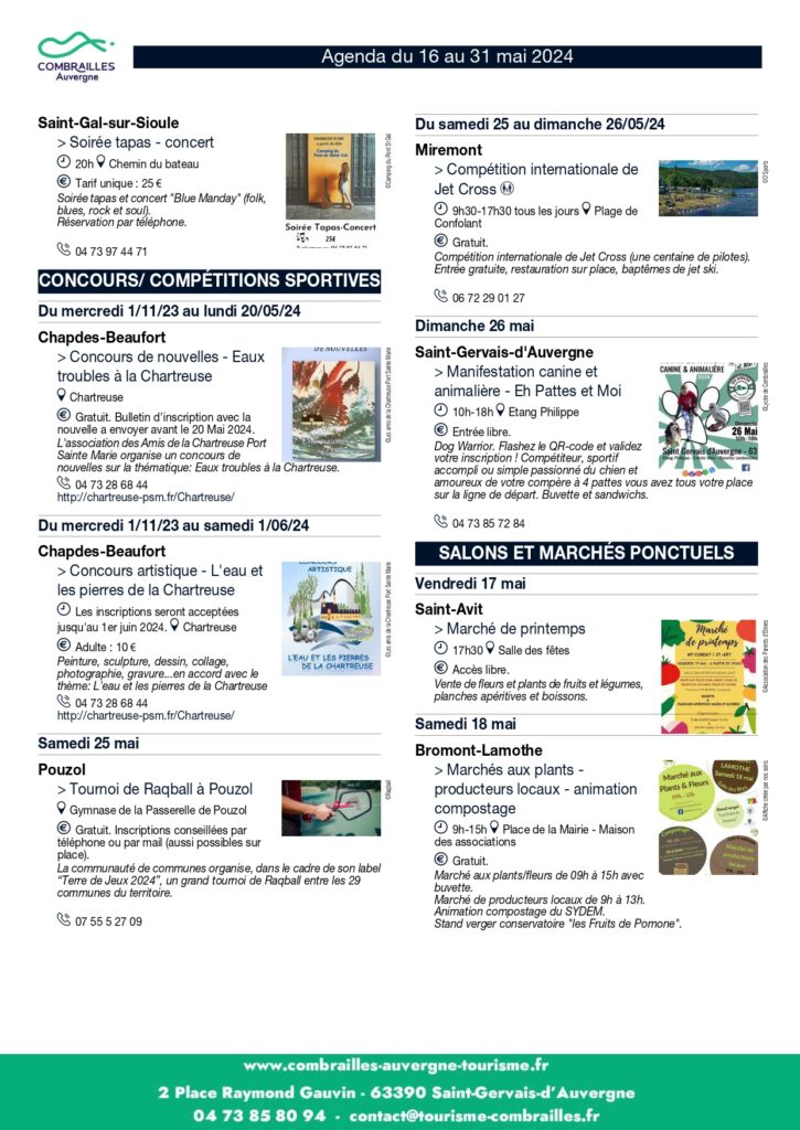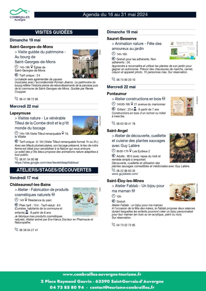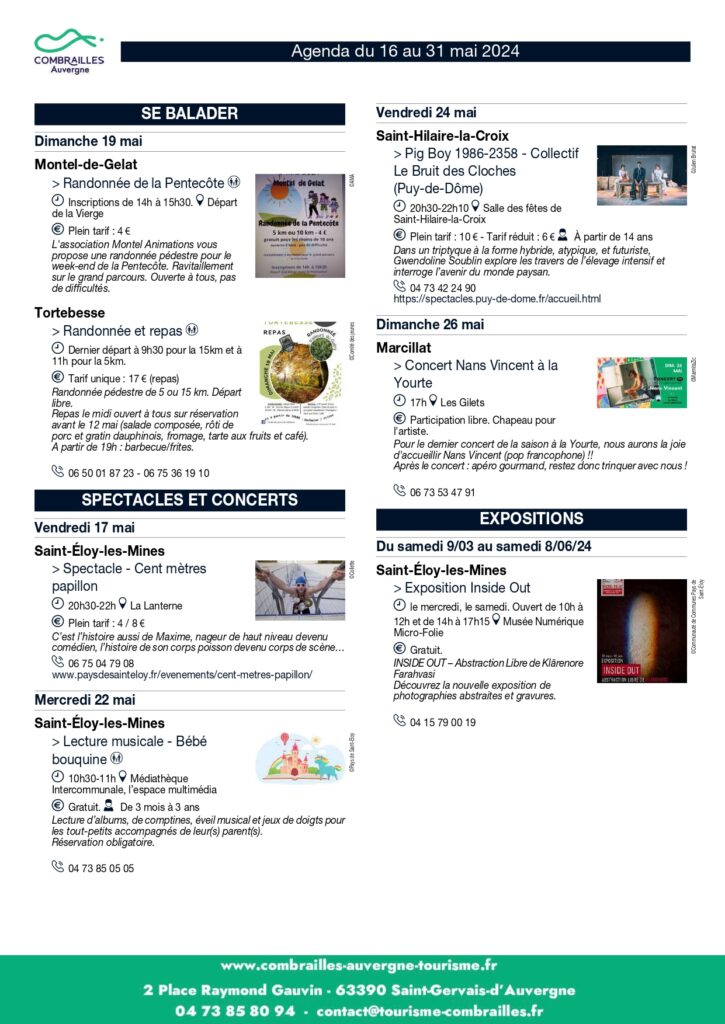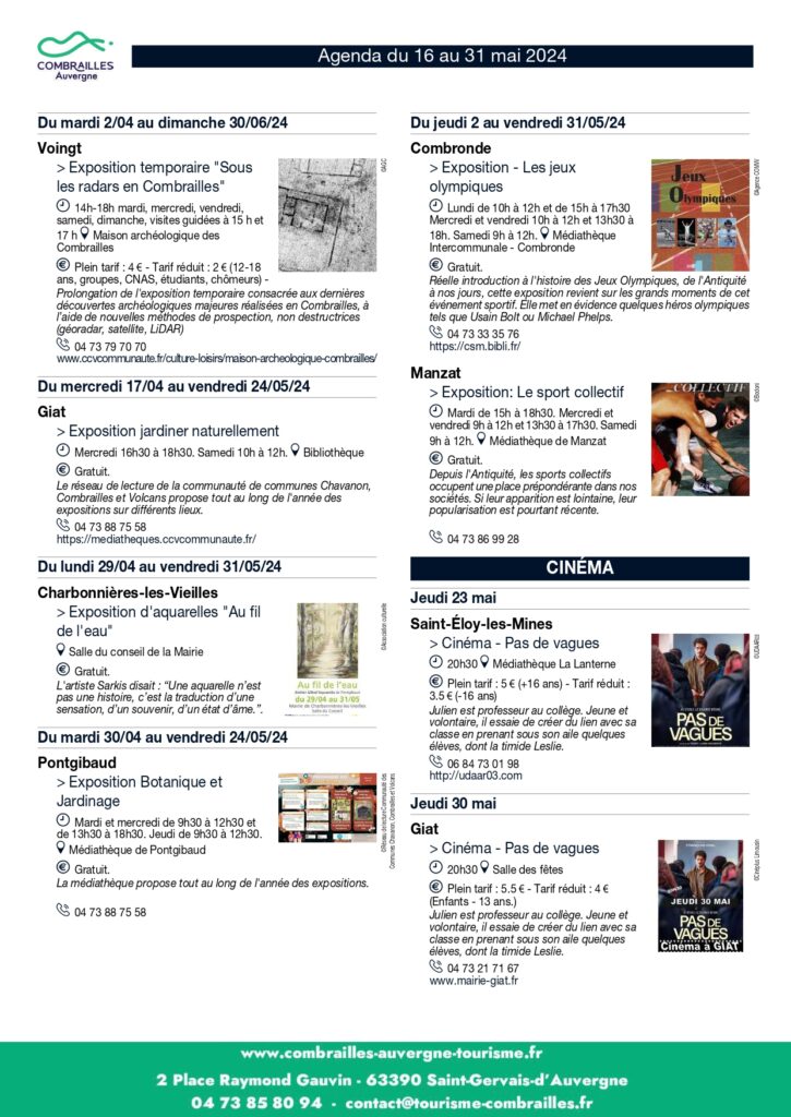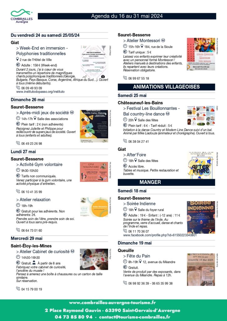 Agenda des Animations du 16 mai au 31 mai 2024