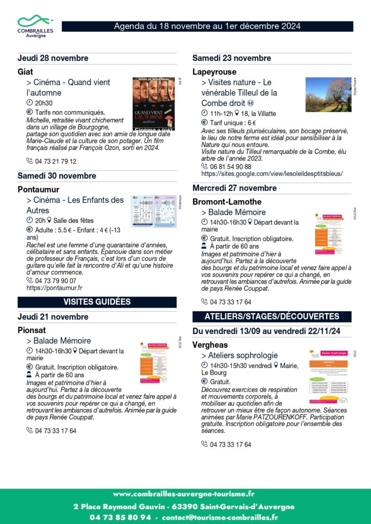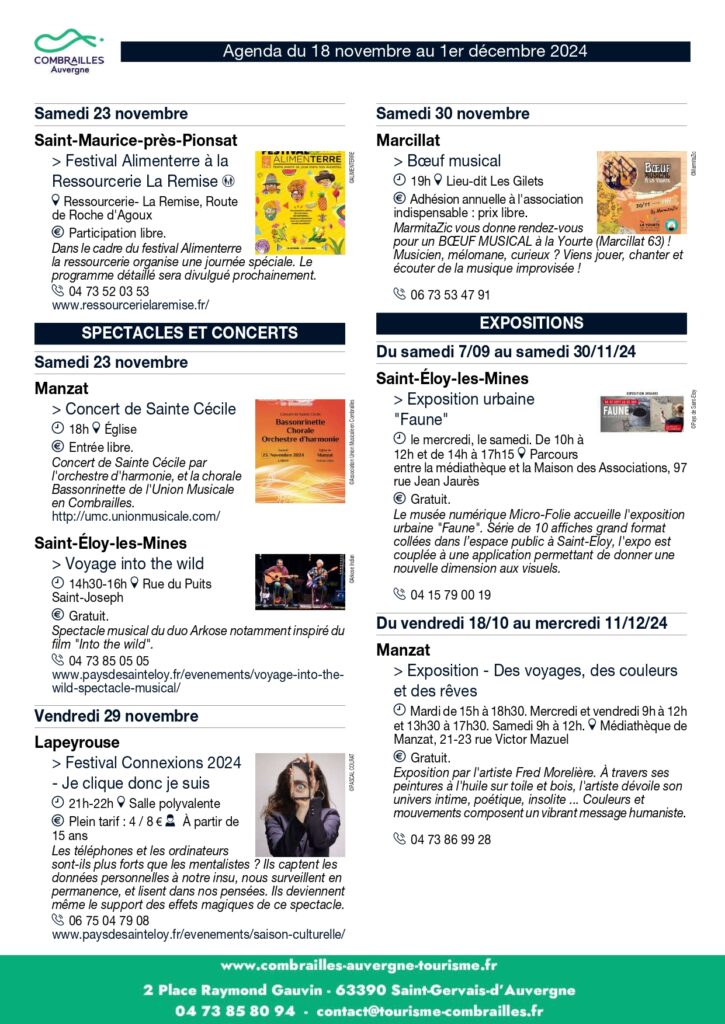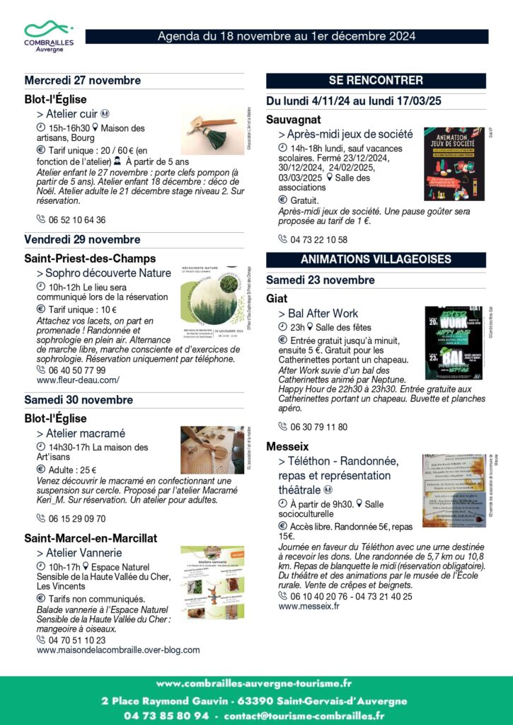 Agenda des animations du 18 novembre au 01er décembre 2024 Agenda des animations du 18 novembre au 01er décembre 2024 Partager : Communauté