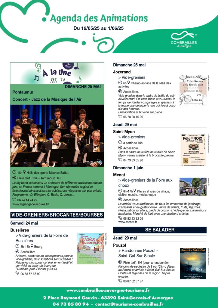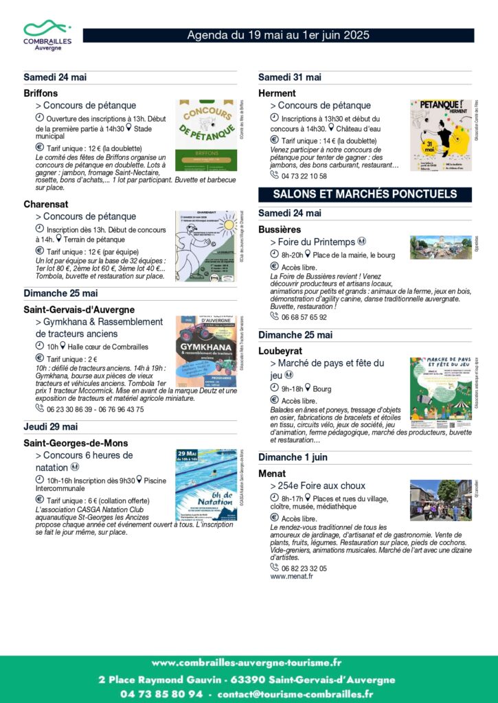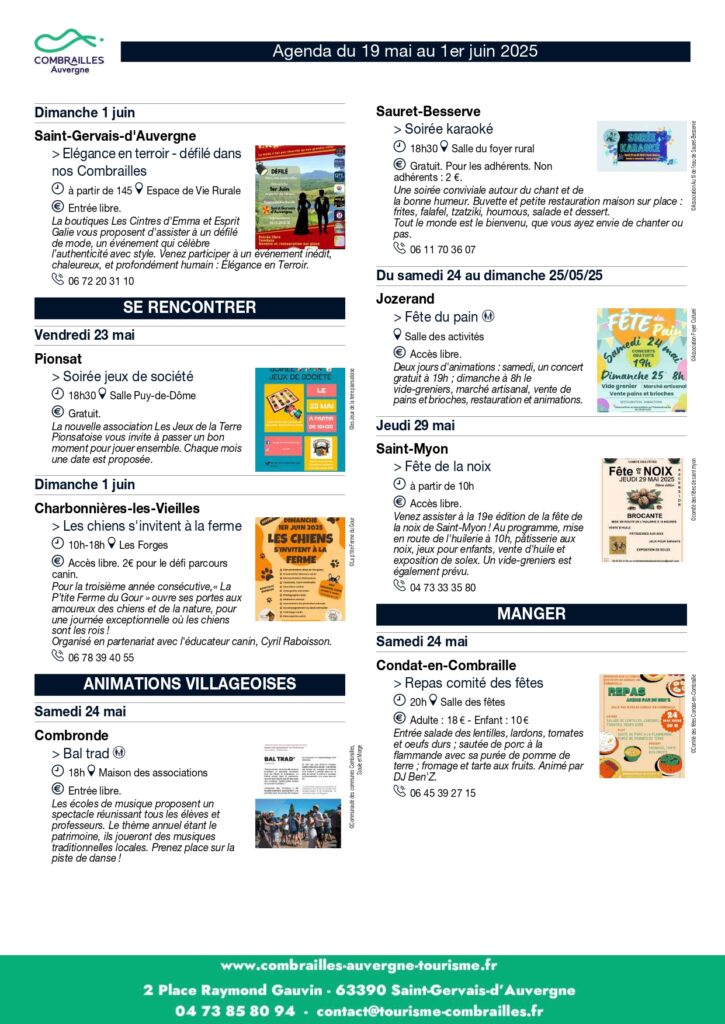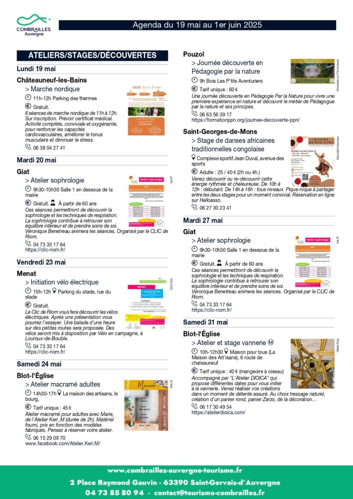 Agenda des Animations du 19 mai au 01er juin 2025.