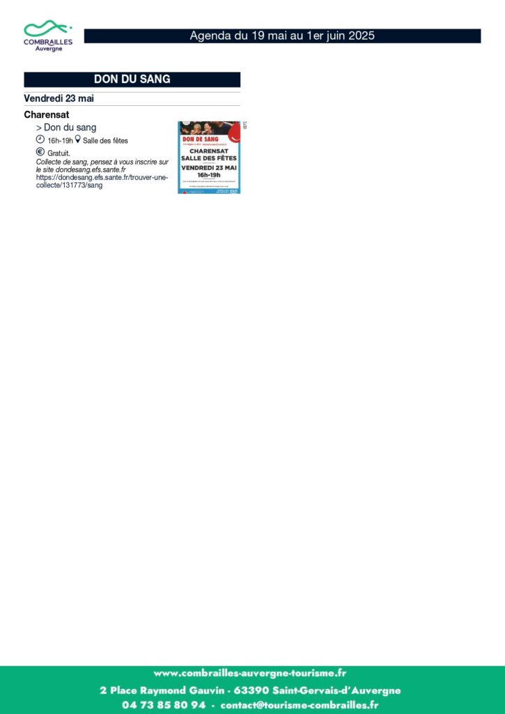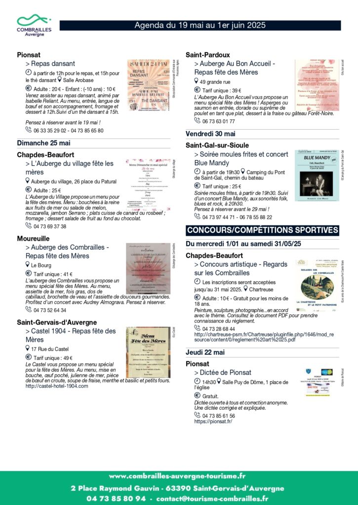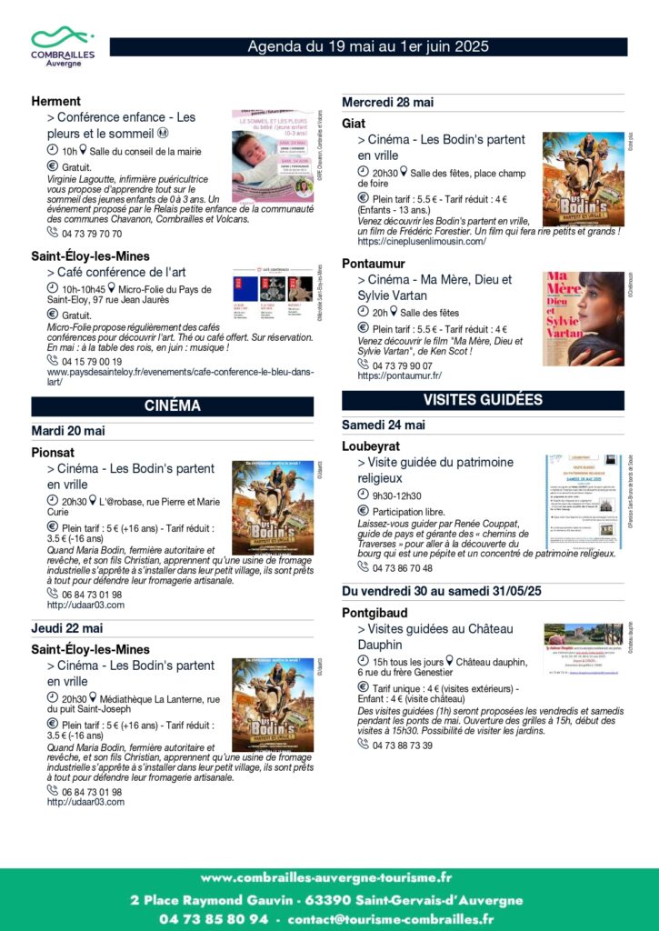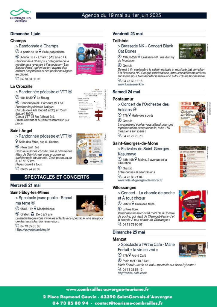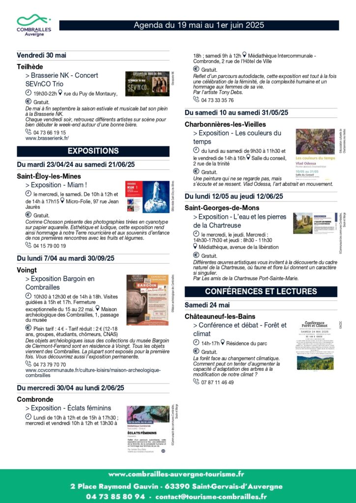 Agenda des Animations du 19 mai au 01er juin 2025.