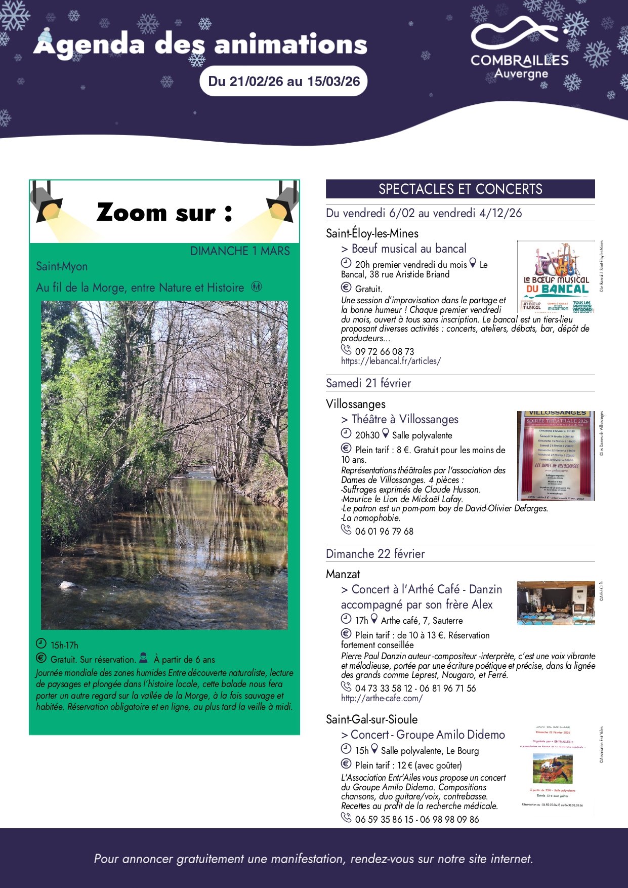 Veuillez trouver ci-dessous l’agenda des manifestations du 21 février au 15 mars 2026.