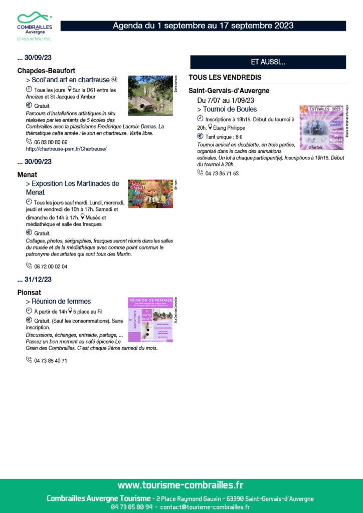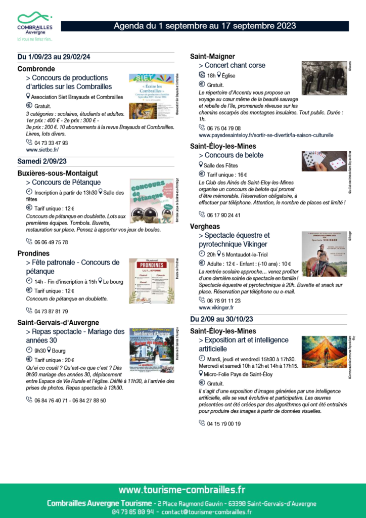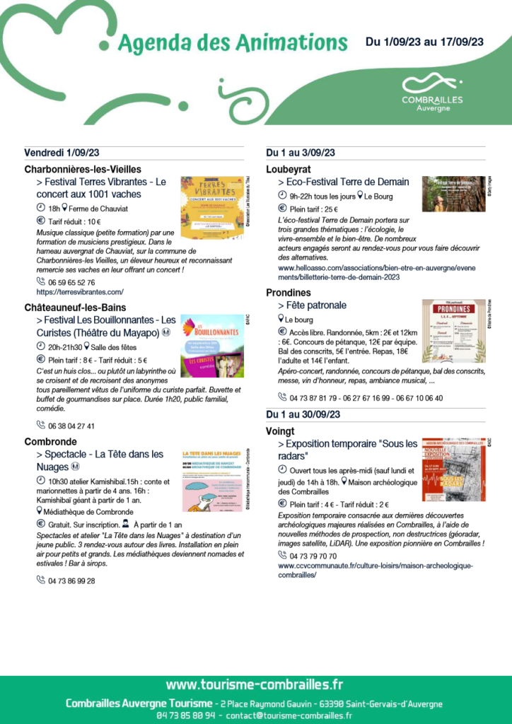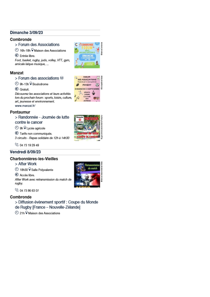Agenda des manifestations du 01er septembre au 17 septembre 2023 Agenda des manifestations du 01er septembre au 17 septembre 2023 Partager : Communauté