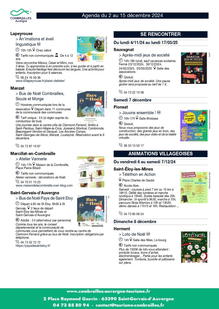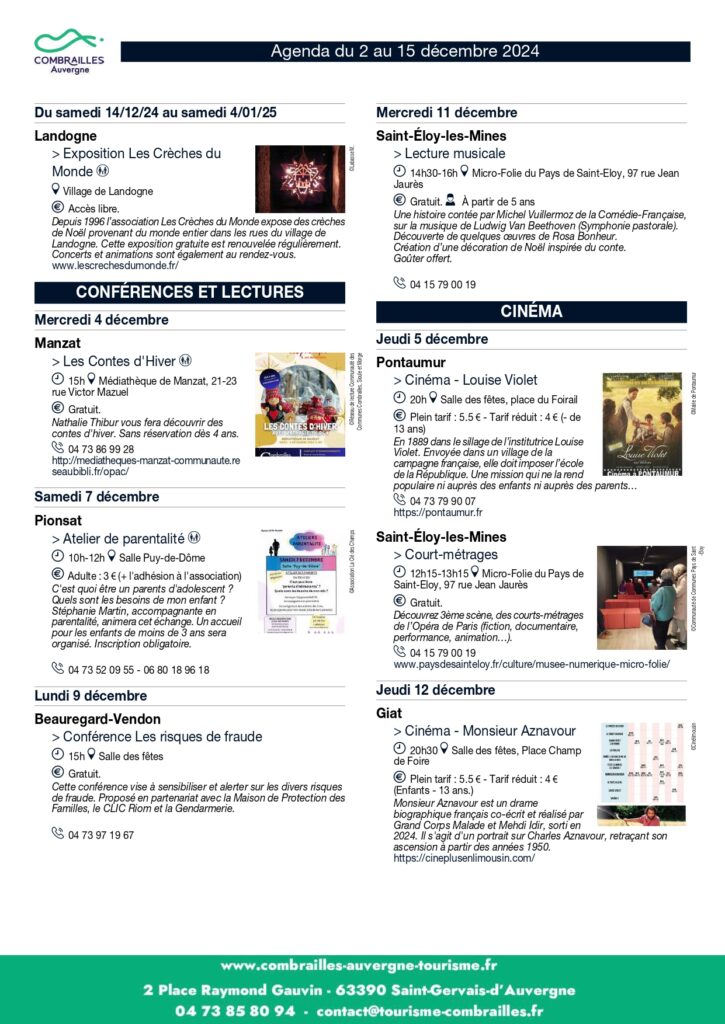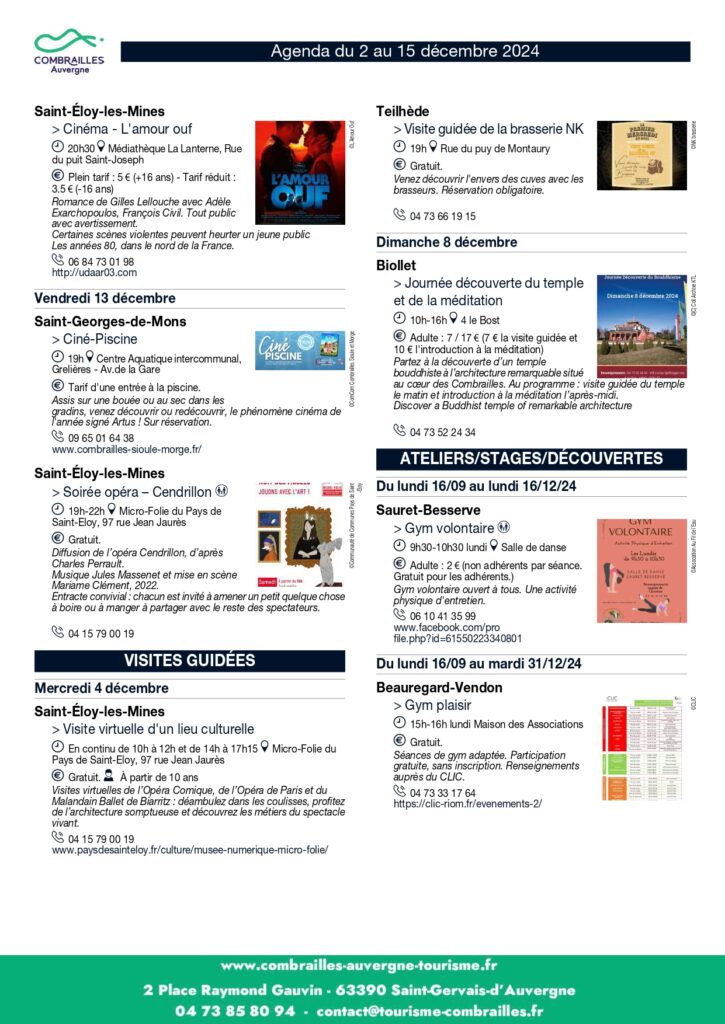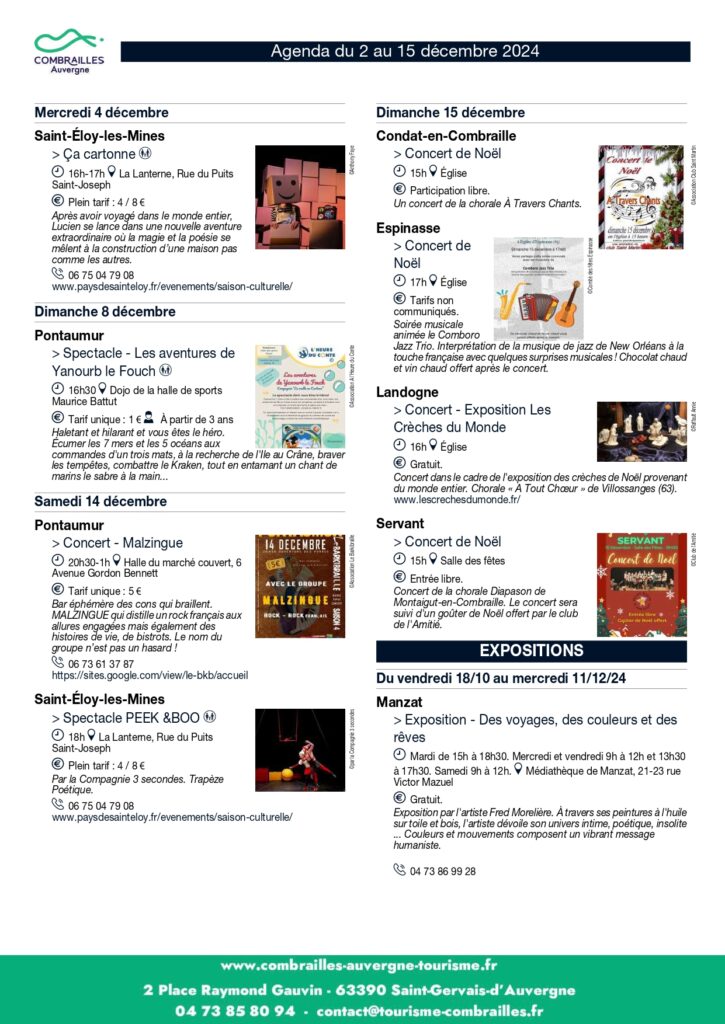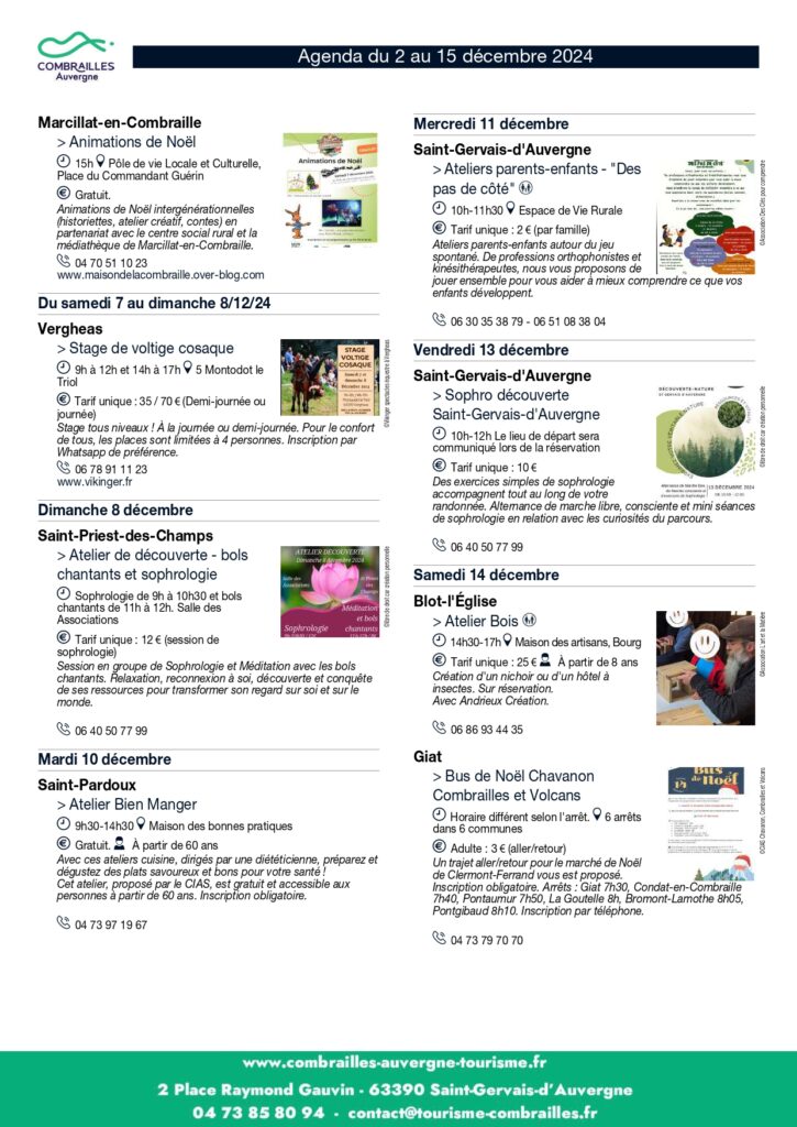 Agenda des manifestations du 02 décembre au 15 décembre 2024