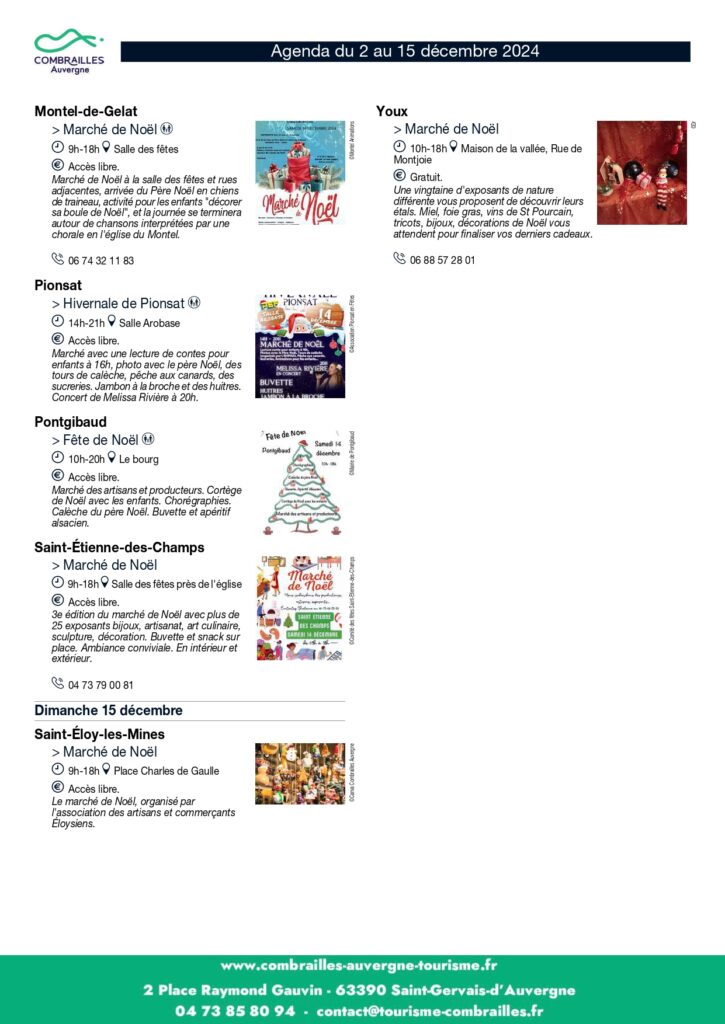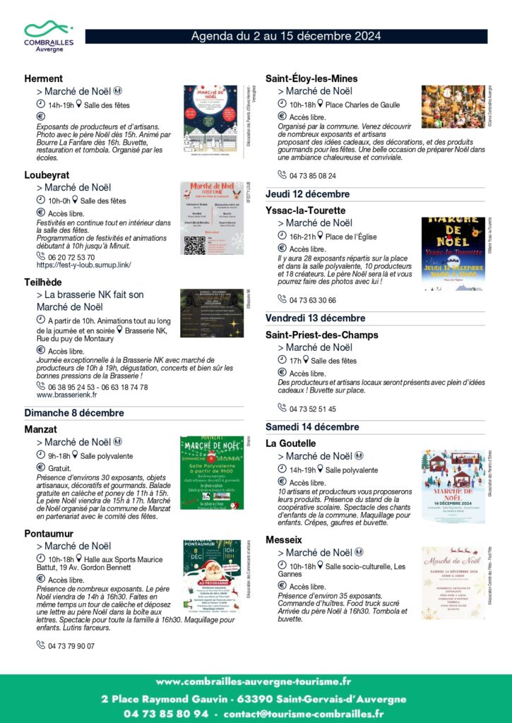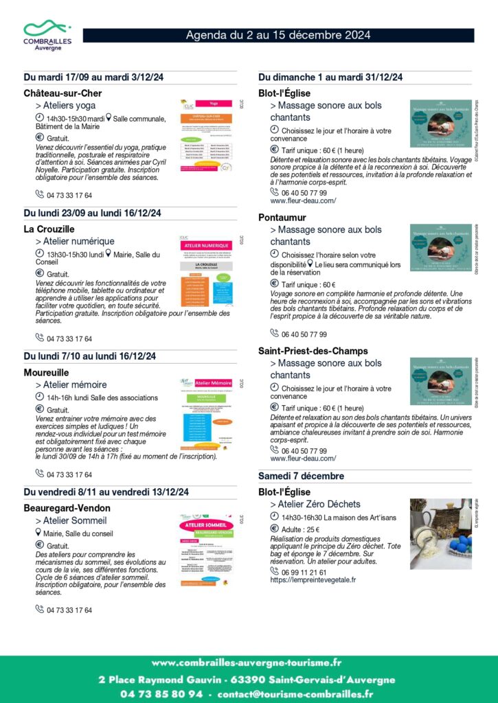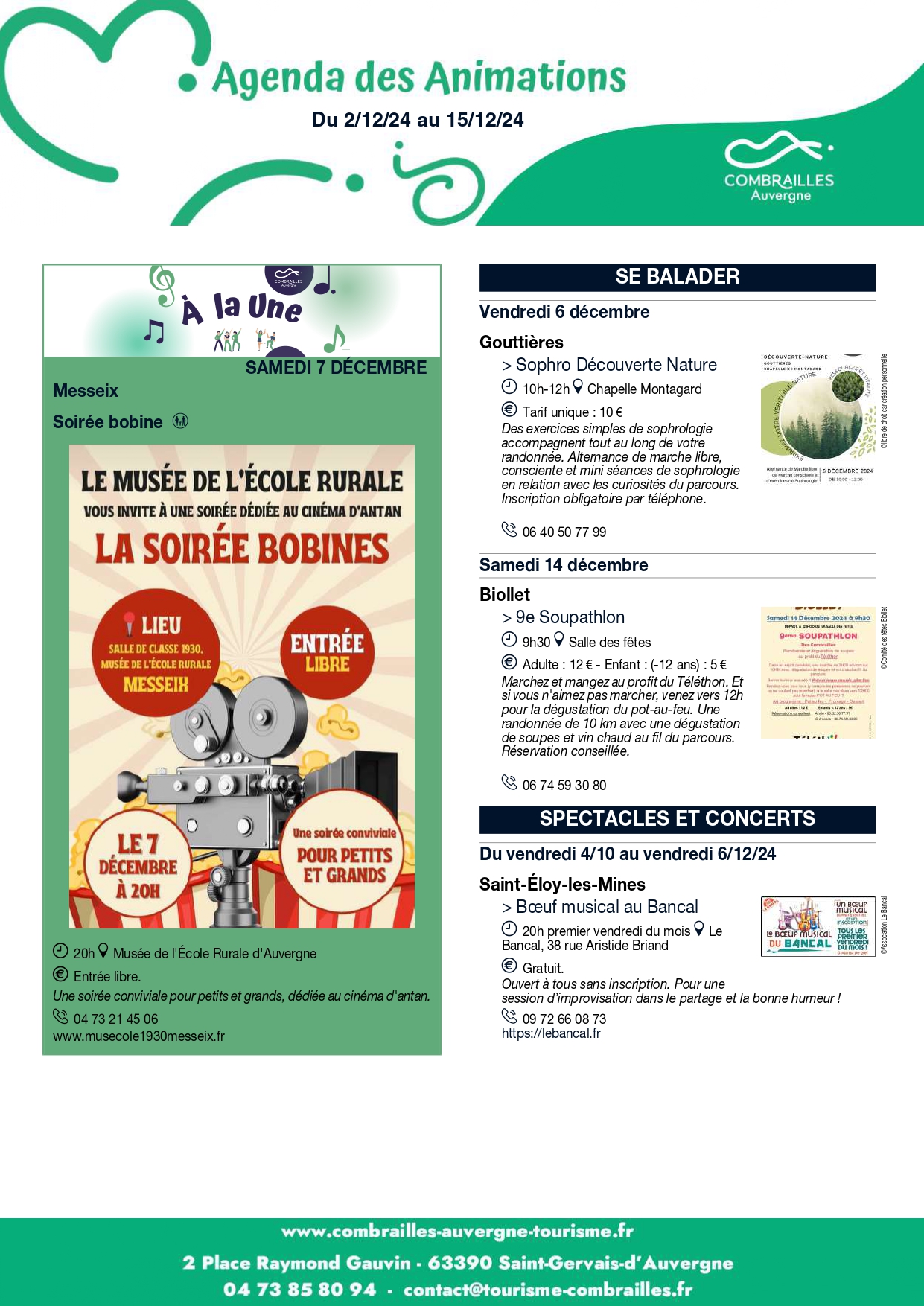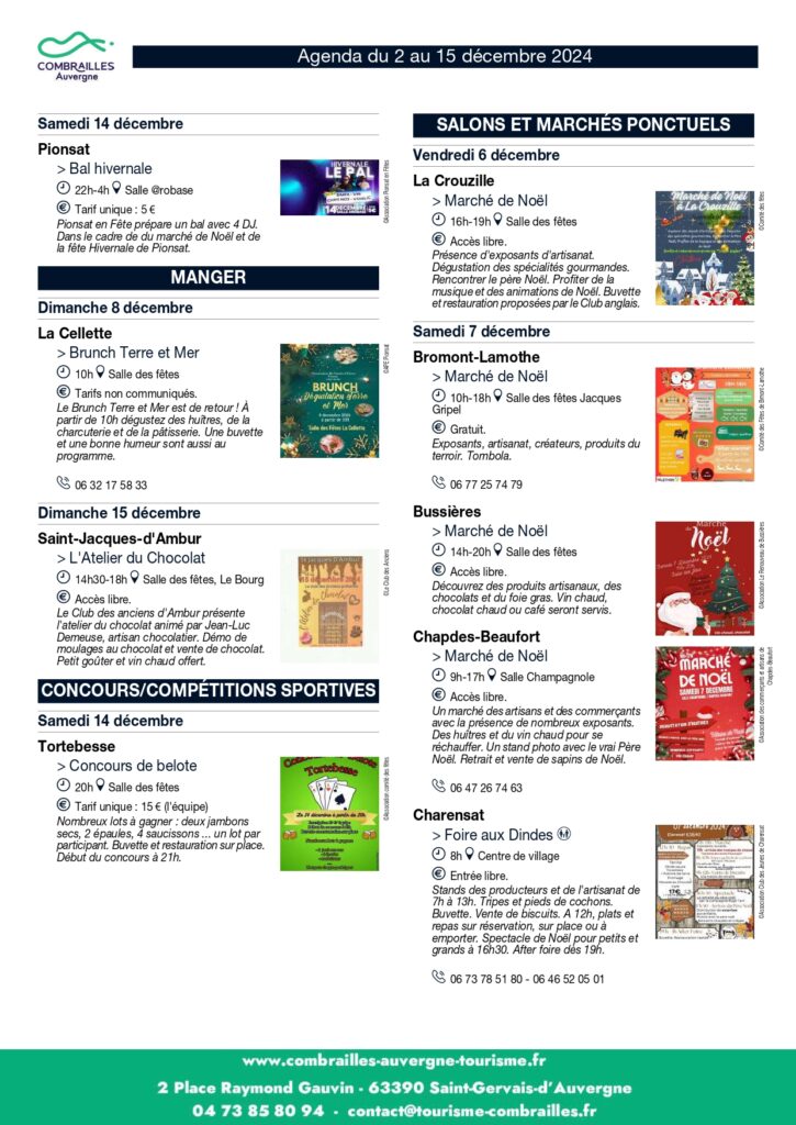 Agenda des manifestations du 02 décembre au 15 décembre 2024