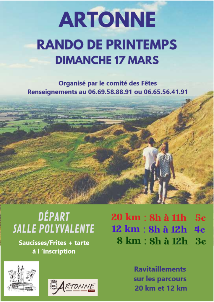 Rando de Printemps le dimanche 17 mars 2024 organisé par le comité des fêtes d’Artonne