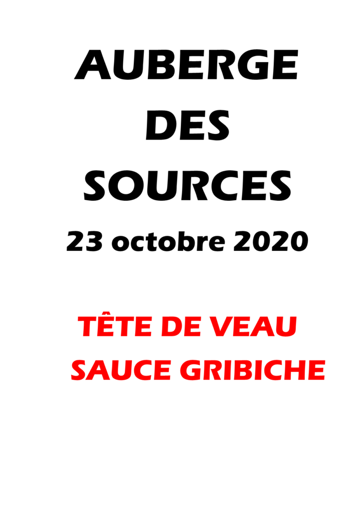 Auberge des sources le Vendredi 23 octobre 2020 Au menu Tête de veau sauce gribiche Veuillez trouver le menu du vendredi 23 octobre 2020 ci dessous Partager : Communauté