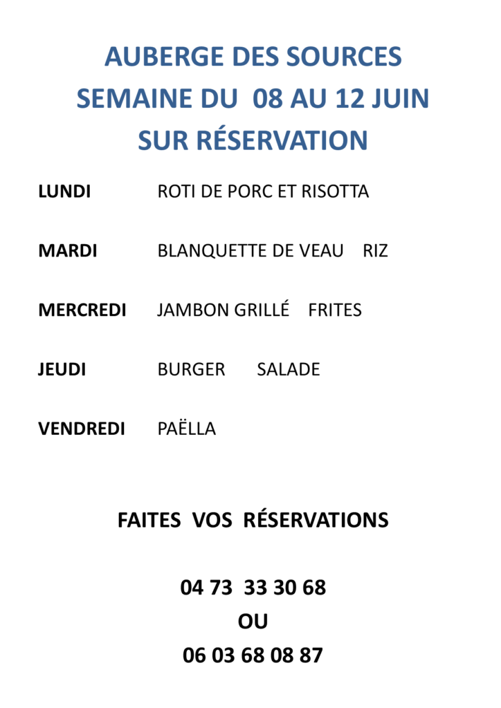 Auberge des sources menu du 08 au 12 juin 2020 Veuillez trouver ci dessous le menu de l’auberge des sources du 08 au 12 juin 2020 Partager : Communauté