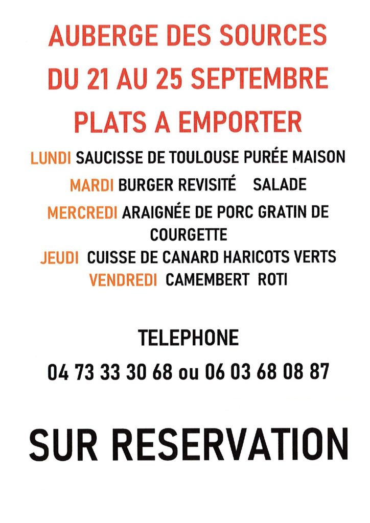 Auberge des sources menu du 21 au 25 septembre 2020 Veuillez trouver ci-dessous le menu de l’auberge des sources du 21 au 25 septembre 2020 Partager : Communauté