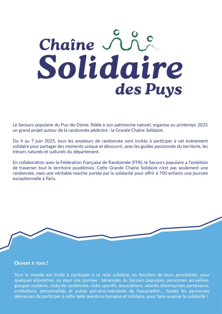 Chaîne solidaire des Puys, faire avancer la solidarité pour les 80 ans du Secours populaire