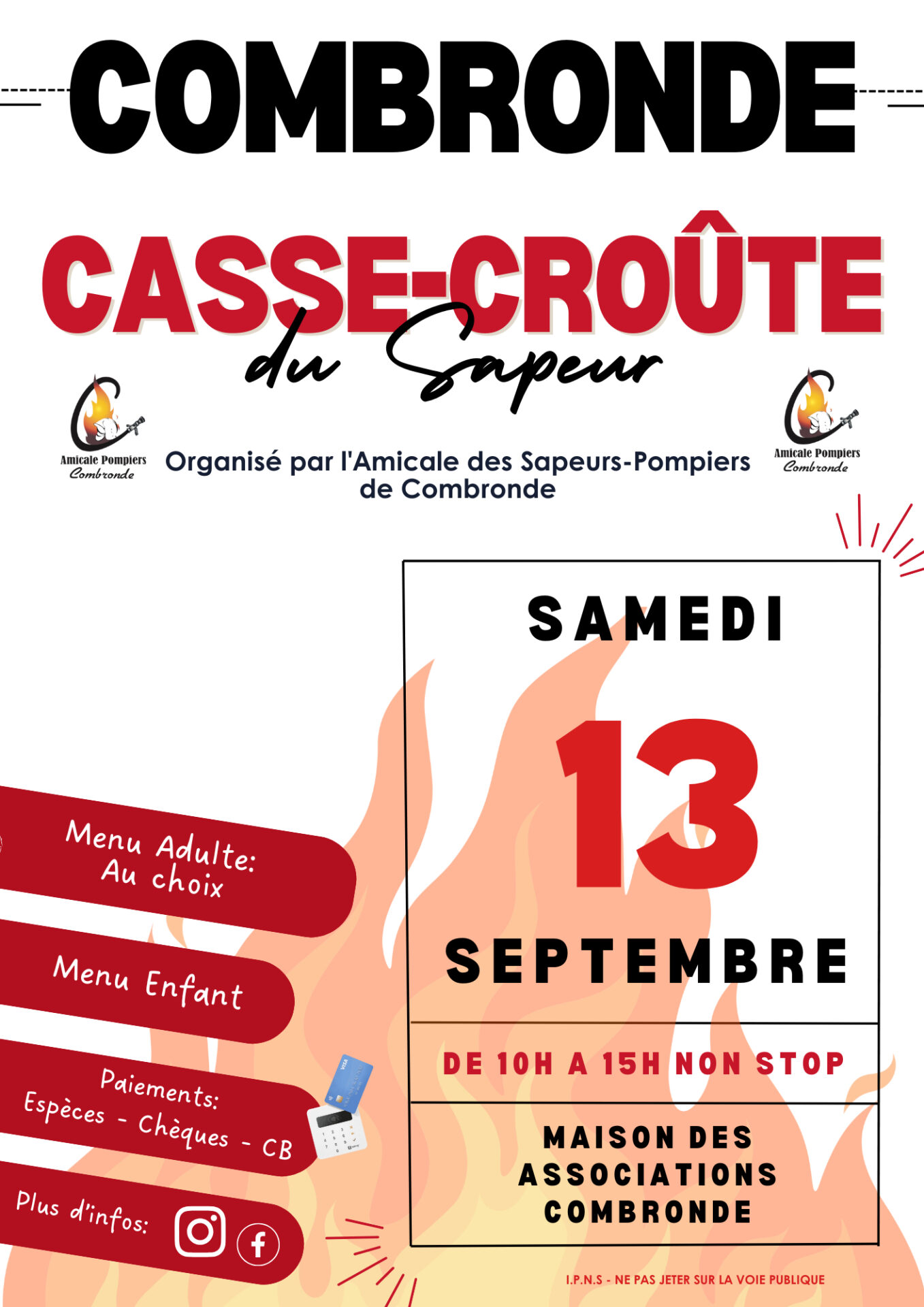 COMBRONDE Casse-Croûte du Sapeur le samedi 13 septembre 2025 de 10h00 à 15h00 Non Stop !