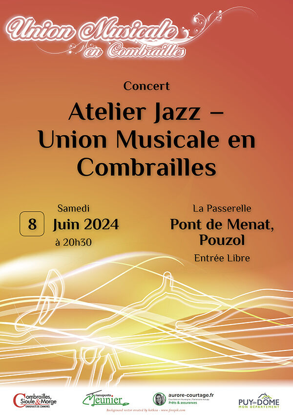 Concert Atelier Jazz Union Musicale en Combrailles le samedi 08 juin 2024 à 20h30 à la Passerelle Pont de Menat, Pouzol