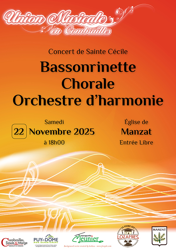 Concert de l’Union Musicale en Combrailles le samedi 22 novembre 18h00 à Manzat