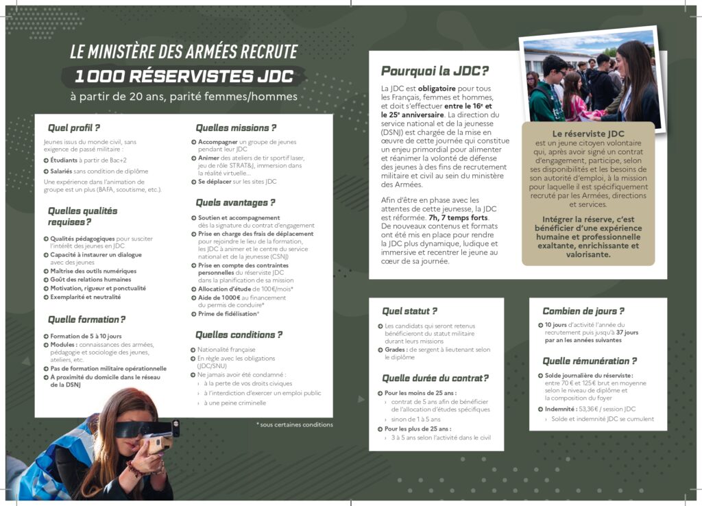 Le Ministère des Armées recrute 1000 réservistes JDC (à partir de 20 ans, parité femmes/hommes)