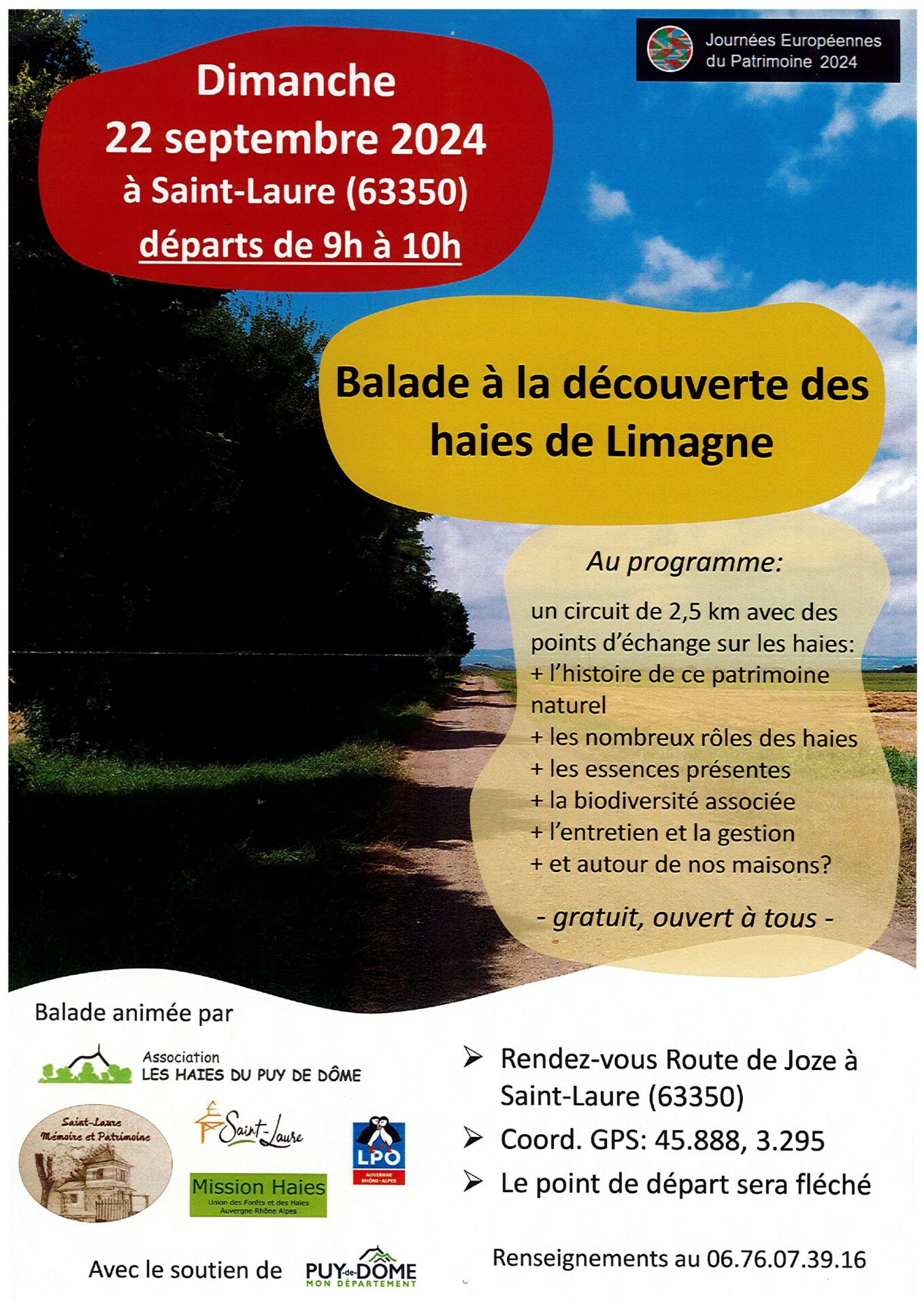 Dimanche 22 septembre 2024 à Saint-Laure « balade à la découverte des haies de Limagne »