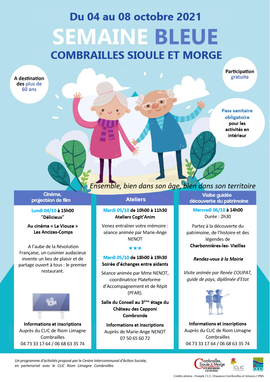 Du 04 au 08 octobre 2021 semaine bleue organisée par la communauté de communes Combrailles Sioule et Morge.
