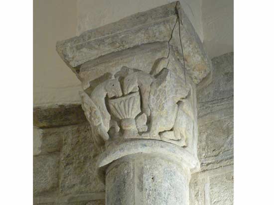 La nef et les collatéraux sont les parties les plus romanes de l’édifice, ce dernier a subi divers remaniements au cours du XIXème siècle.