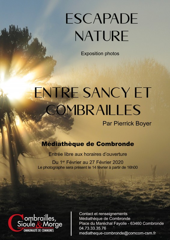Exposition photographique « Escapade nature : entre Sancy et Combrailles » du 01er au 27 février 2020, venez découvrir à la médiathèque de Combronde les photos de Pierrick BOYER.