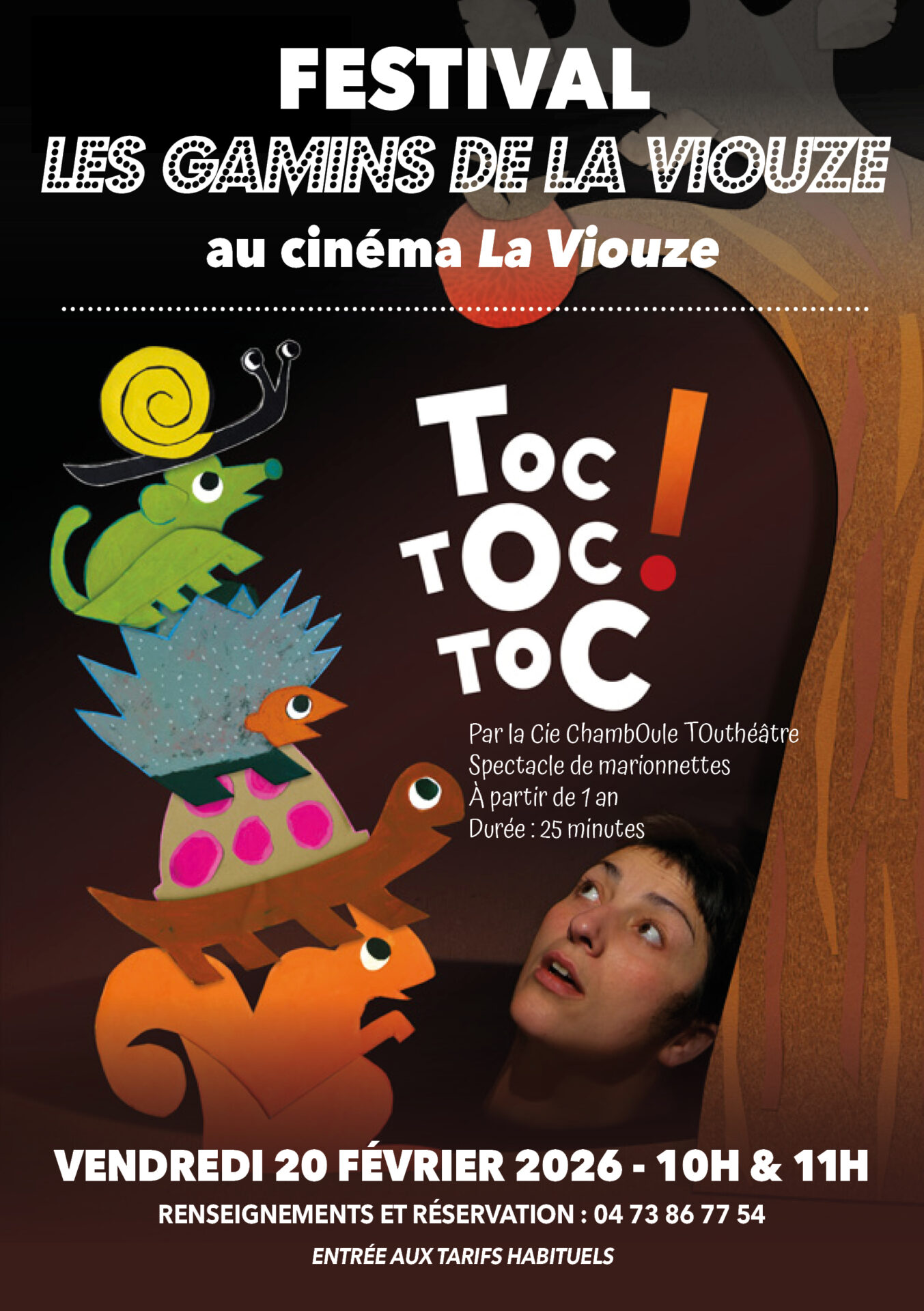 Vendredi 20 février 2026 de 10h00 à 11h00 au cinéma La Viouze Toc Toc Toc ! par la compagnie Chamboule Touthéatre.