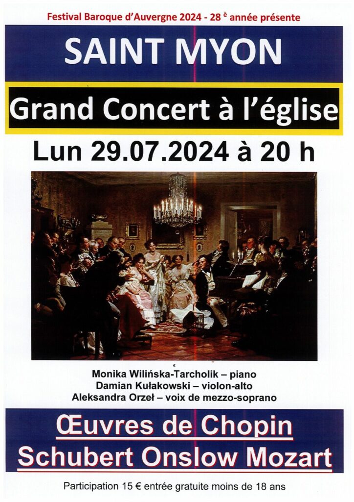 Grand concert à l’église le lundi 29 juillet 2024 à 20h00