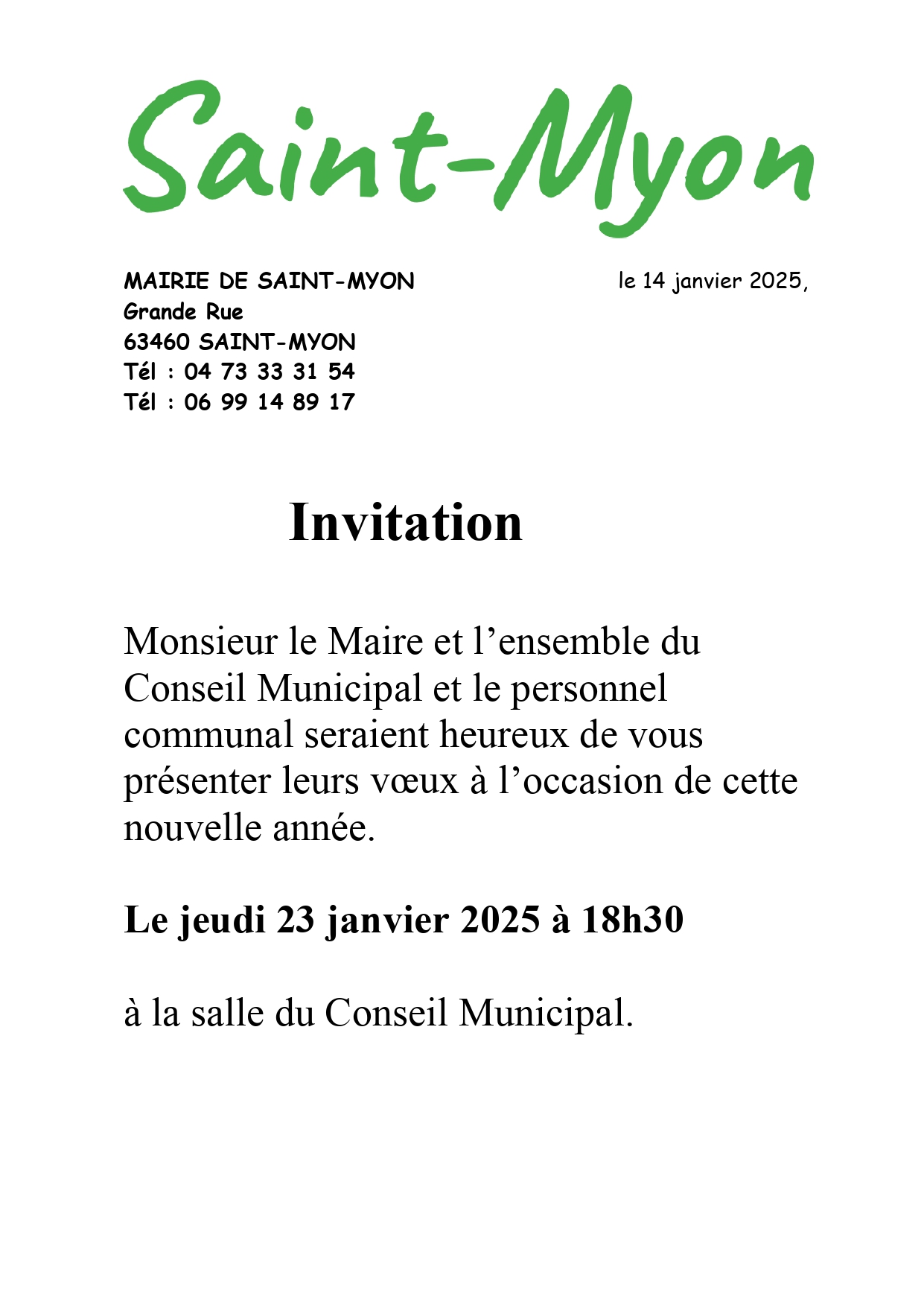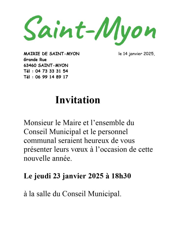 Monsieur le Maire et l’ensemble du Conseil Municipal et le personnel communal seraient heureux de vous présenter leurs vœux à l’occasion de cette nouvelle année.