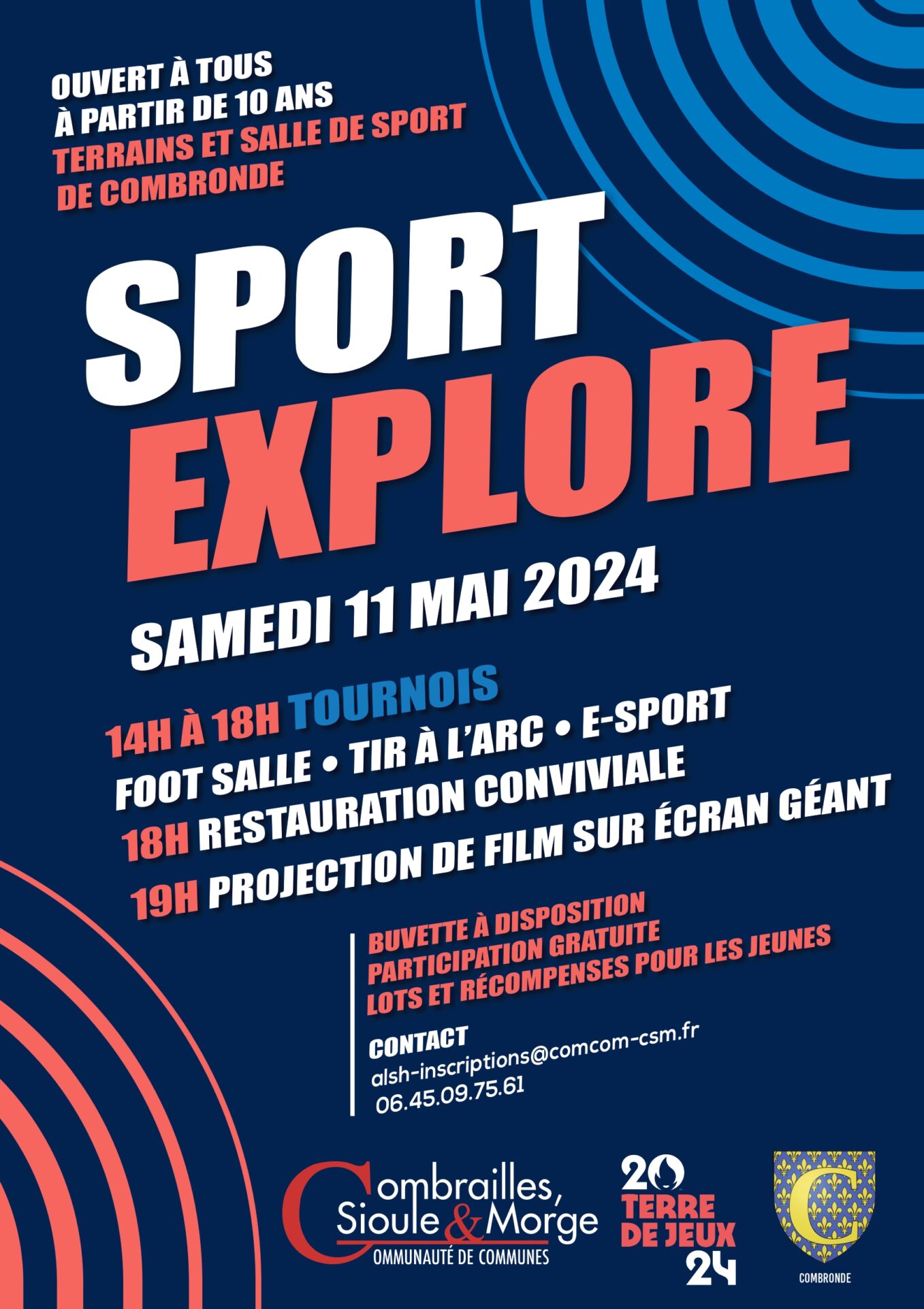 La Communauté de Communes Combrailles Sioule et Morge organise le Samedi 11 mai 2024 à Combronde Sport explore