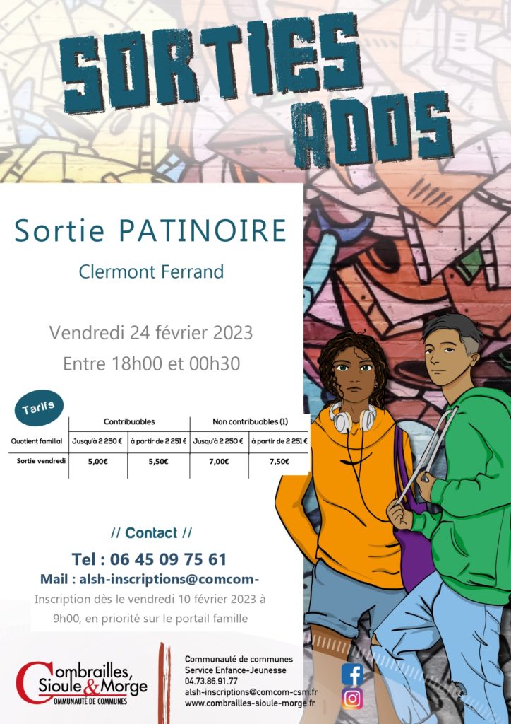 La Communauté de Communes Combrailles Sioule et Morge organise une sortie patinoire le vendredi 24 février 2023.