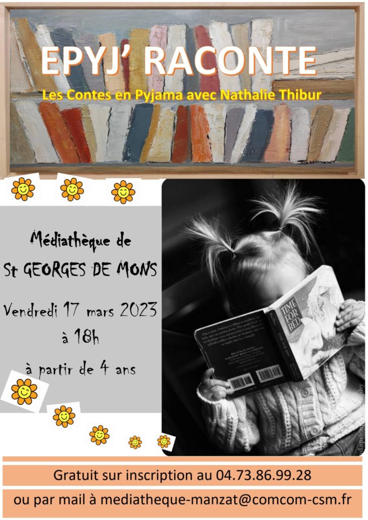 La médiathèque relais de Saint-Georges-de- Mons a le plaisir d’ accueillir Nathalie Thibur pour une séance Epyj’raconte : Le vendredi 17 mars à 18h00