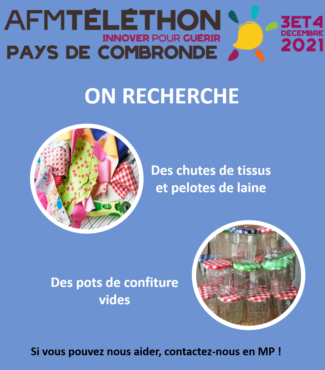 Si vous souhaitez nous rejoindre, et en cas d’indisponibilité le jour de la réunion, contactez-nous par email contact@telethonpaysdecombronde.fr