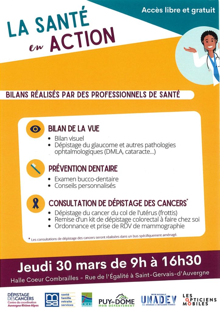« La santé en action » le jeudi 30 mars 2023 de 09h00 à 16h30 à la Halle Cœur Combrailles à Saint-Gervais-d’Auvergne. Partager : Communauté