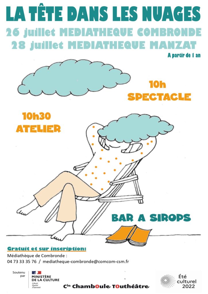 Le réseau de lecture publique Combrailles, Sioule et Morge et la Cie Chamboule Touthéâtre vous invitent à participer à un spectacle en plein air dans un installation estivale, avec transats et parasols. A partir de 1 an