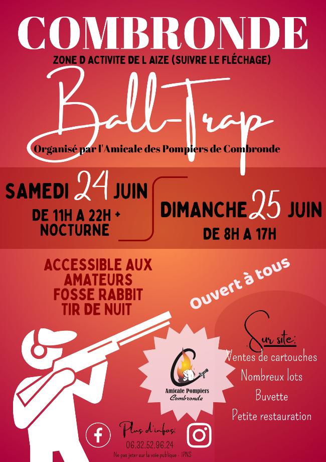 L’amicale des pompiers de Combronde organise le samedi 24 et le dimanche 25 juin 2023 un Ball Trap sur la zone d’activité de L’Aize à Combronde.