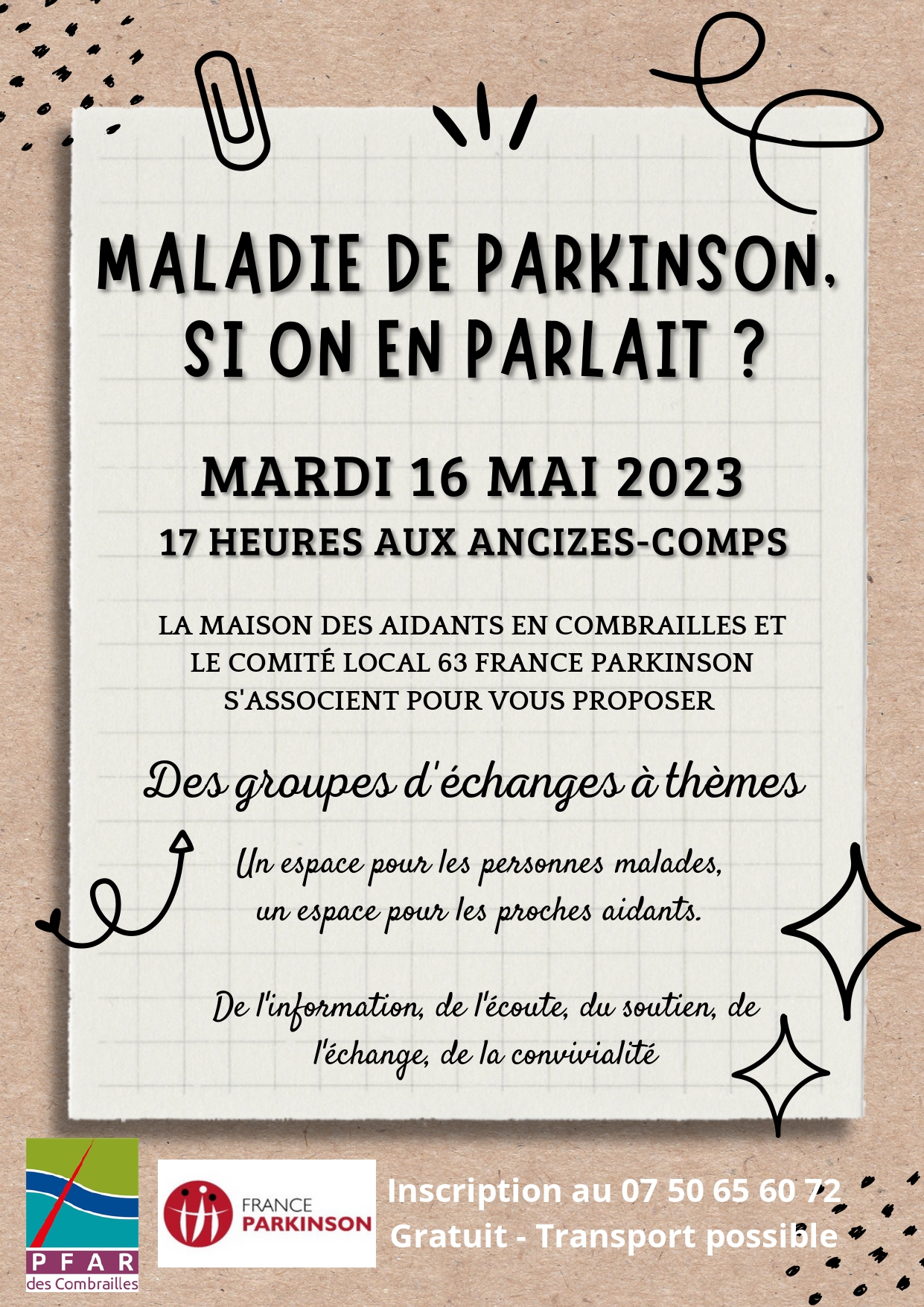 Le PFAR des Combrailles vous propose d’échanger sur la maladie de Parkinson le mardi 16 mai 2023 à 17h00 aux Ancizes-Comps Partager : Communauté