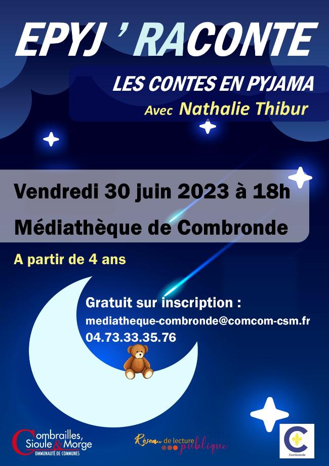 Le réseau de lecture publique de Combrailles Sioule et Morge vous invite à participer à une séance de CONTES EN PYJAMA : À la médiathèque de Combronde, le vendredi 30 juin à 18h00