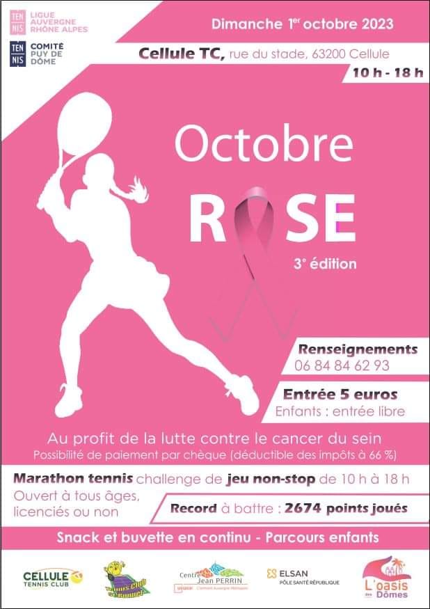 Le Tennis Club de Cellule organise le dimanche 01er octobre la 3eme édition d’Octobre Rose au profit de la lutte contre le cancer du sein.