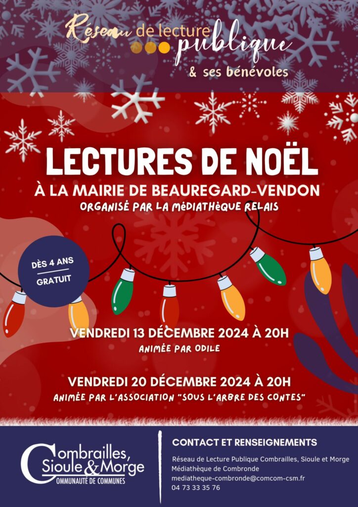 Lectures de Noël à la Mairie de Beauregard-Vendon le vendredi 13 décembre et le vendredi 20 décembre 2024 organisé par la Médiathèque relais.