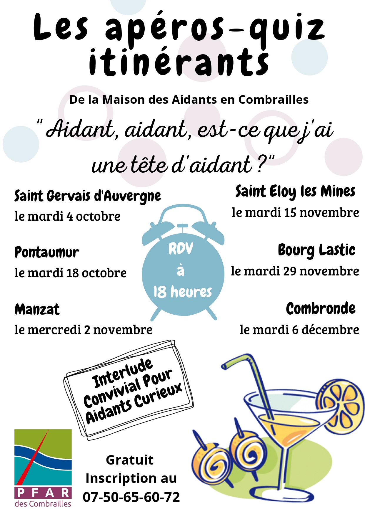 Veuillez trouver ci-dessous les apéros-quiz itinérants organisé par la Maison des Aidants en Combrailles