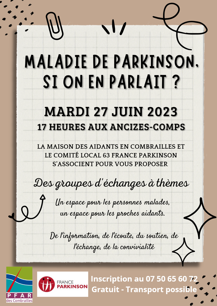 Maladie de Parkinson si on en parlait mardi 27 juin 2023 à 17h00 Aux Ancizes-Comps.