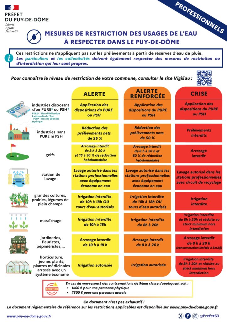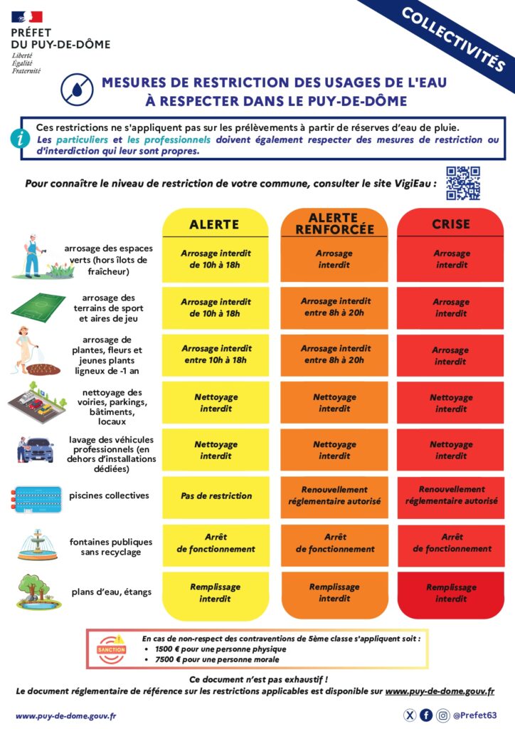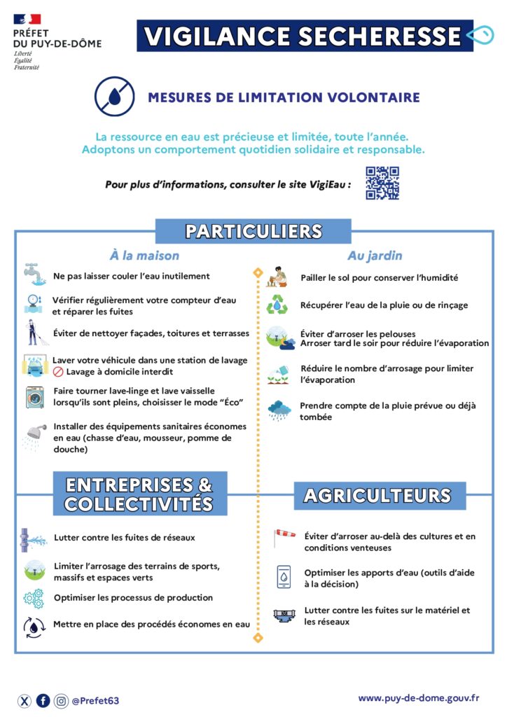 Mesures de restriction des usages de l’eau à respecter dans le Puy-De-Dôme.