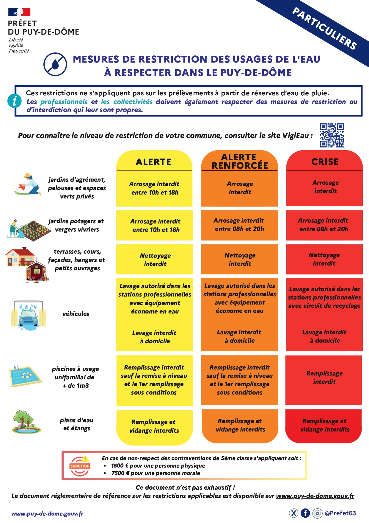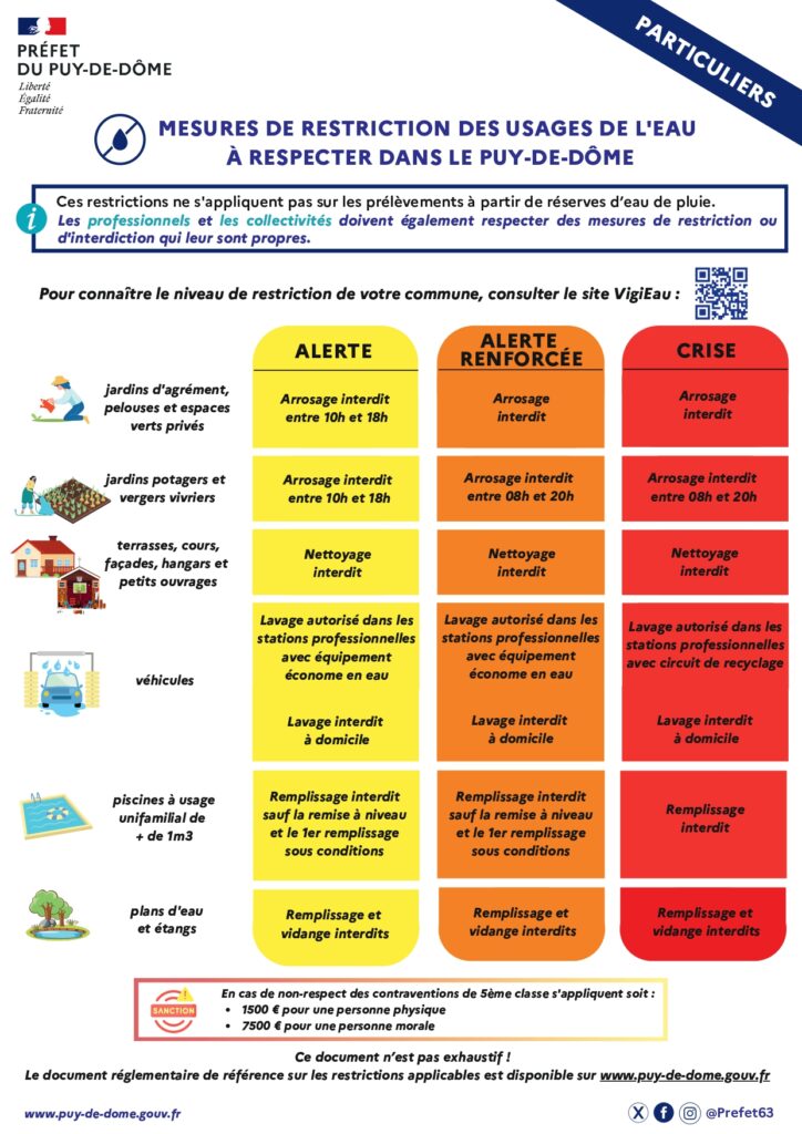 Mesures de restriction des usages de l’eau à respecter dans le Puy-De-Dôme.