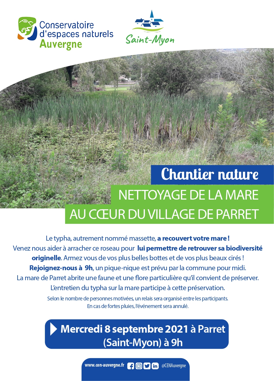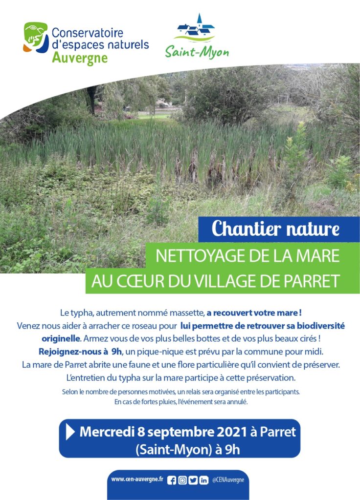 Nettoyage de la mare de Parret le mercredi 08 septembre 2021 à 09h00.