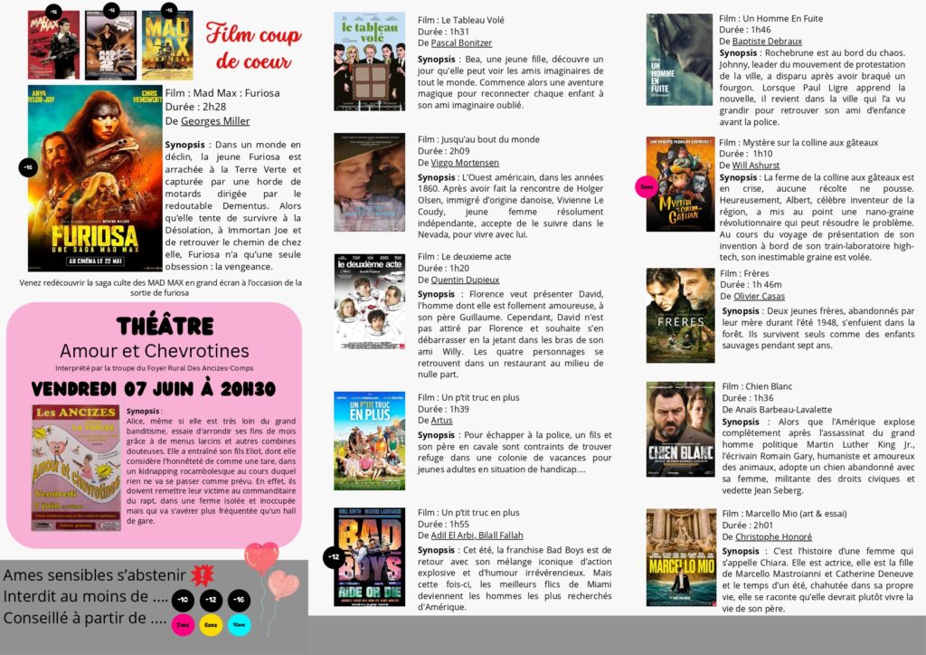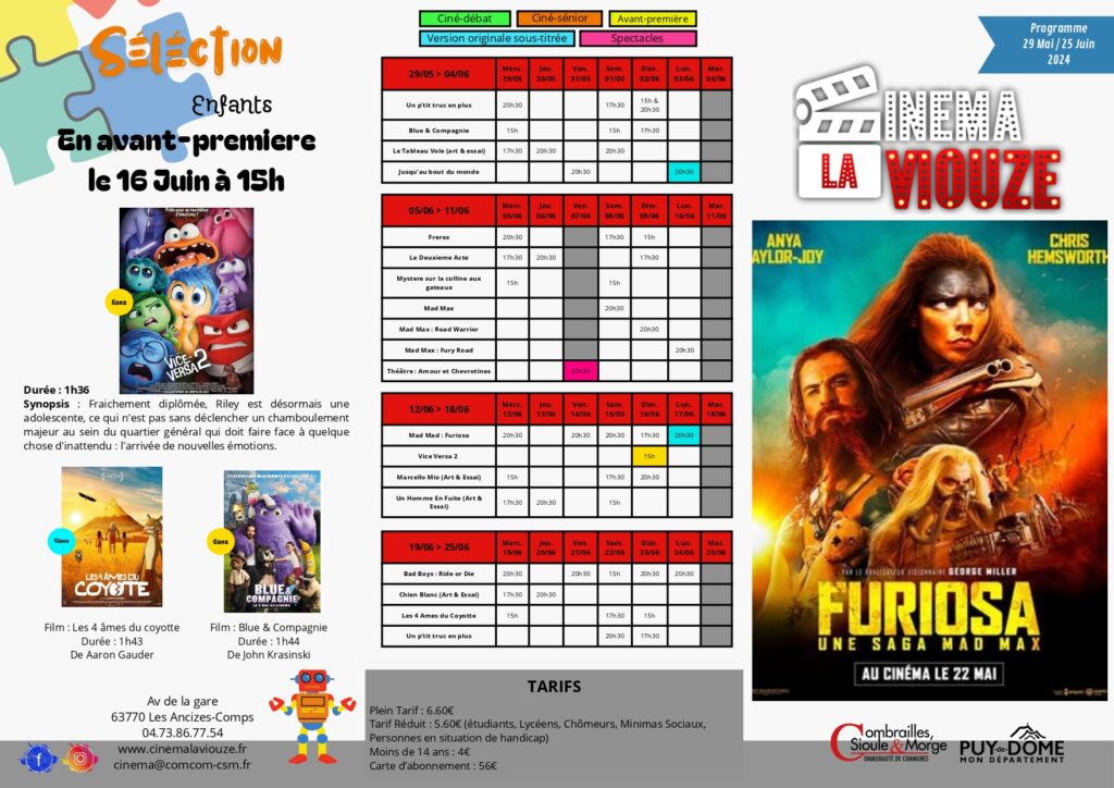 Veuillez trouver ci-dessous le programme de cinéma la Viouze du 29 mai au 25 juin 2024