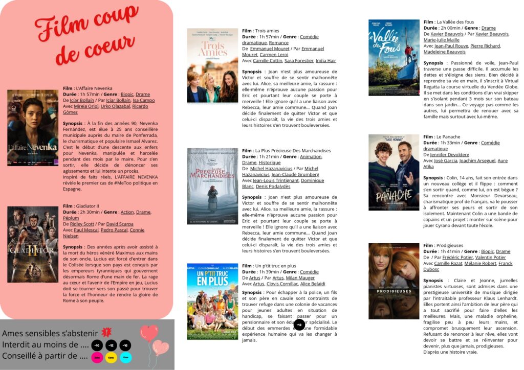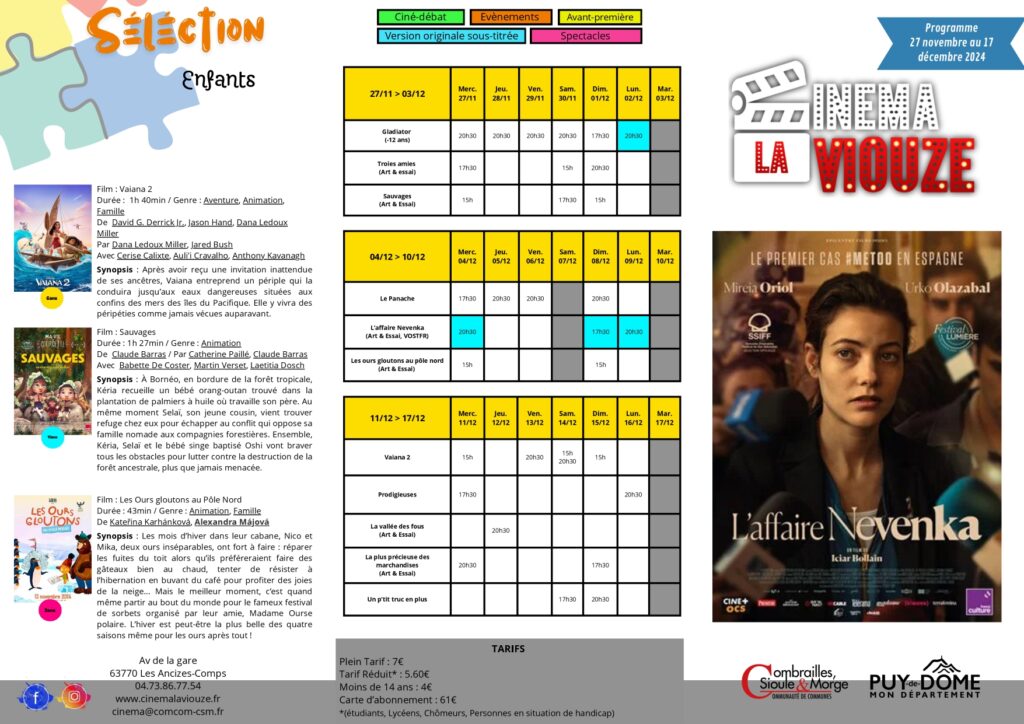Programme cinéma la Viouze du mercredi 27 novembre au mardi 17 décembre 2024.