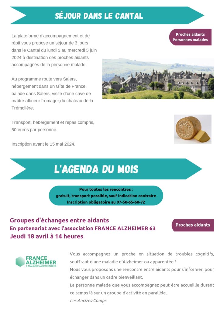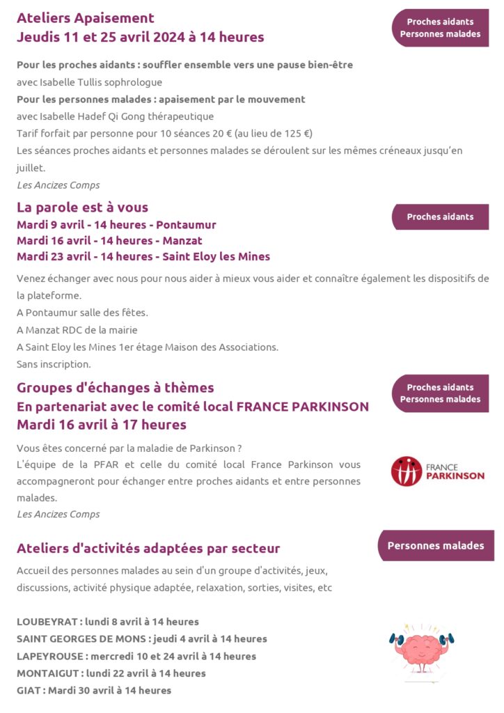 Programme d’avril Maison des Aidants en Combrailles