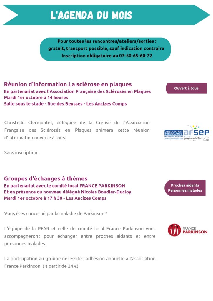 - Réunion d’information Sclérose en Plaques le 1er octobre