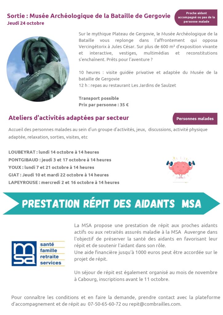 Programme d’octobre 2024 à la Maison des Aidants en Combrailles