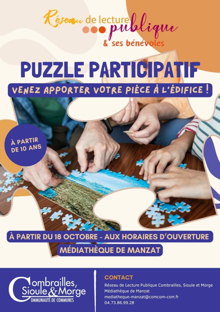 Puzzle participatif, venez apporter votre pièce à l’édifice ! à partir du samedi 18 octobre à la médiathèque de Manzat.