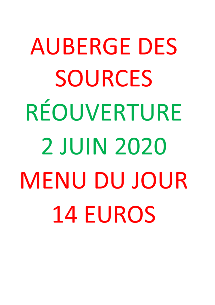 Réouverture de l’auberge des sources le mardi 02 juin 2020 Réouverture de l’auberge des sources le mardi 02 juin 2020 Partager : Communauté