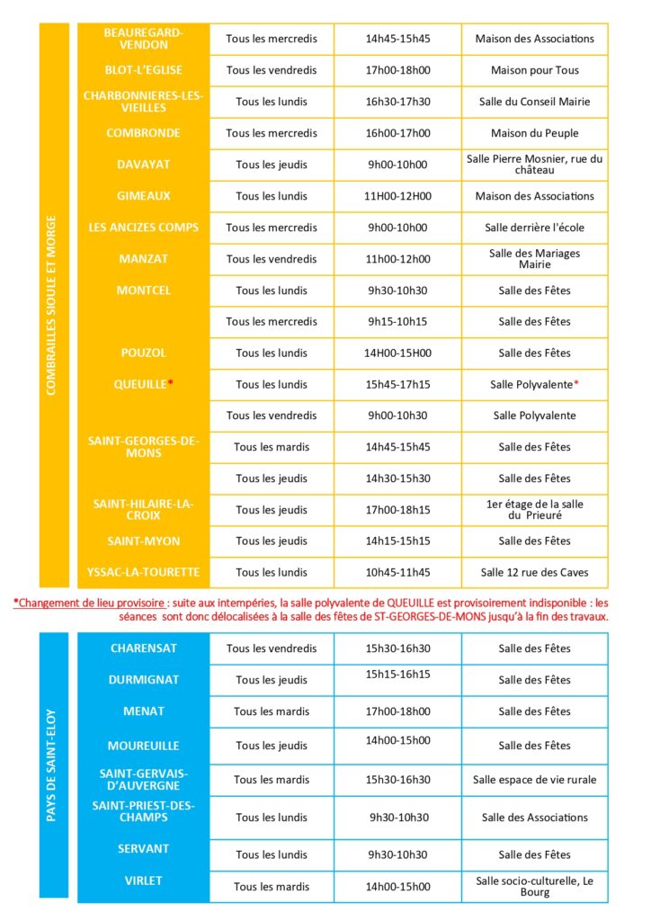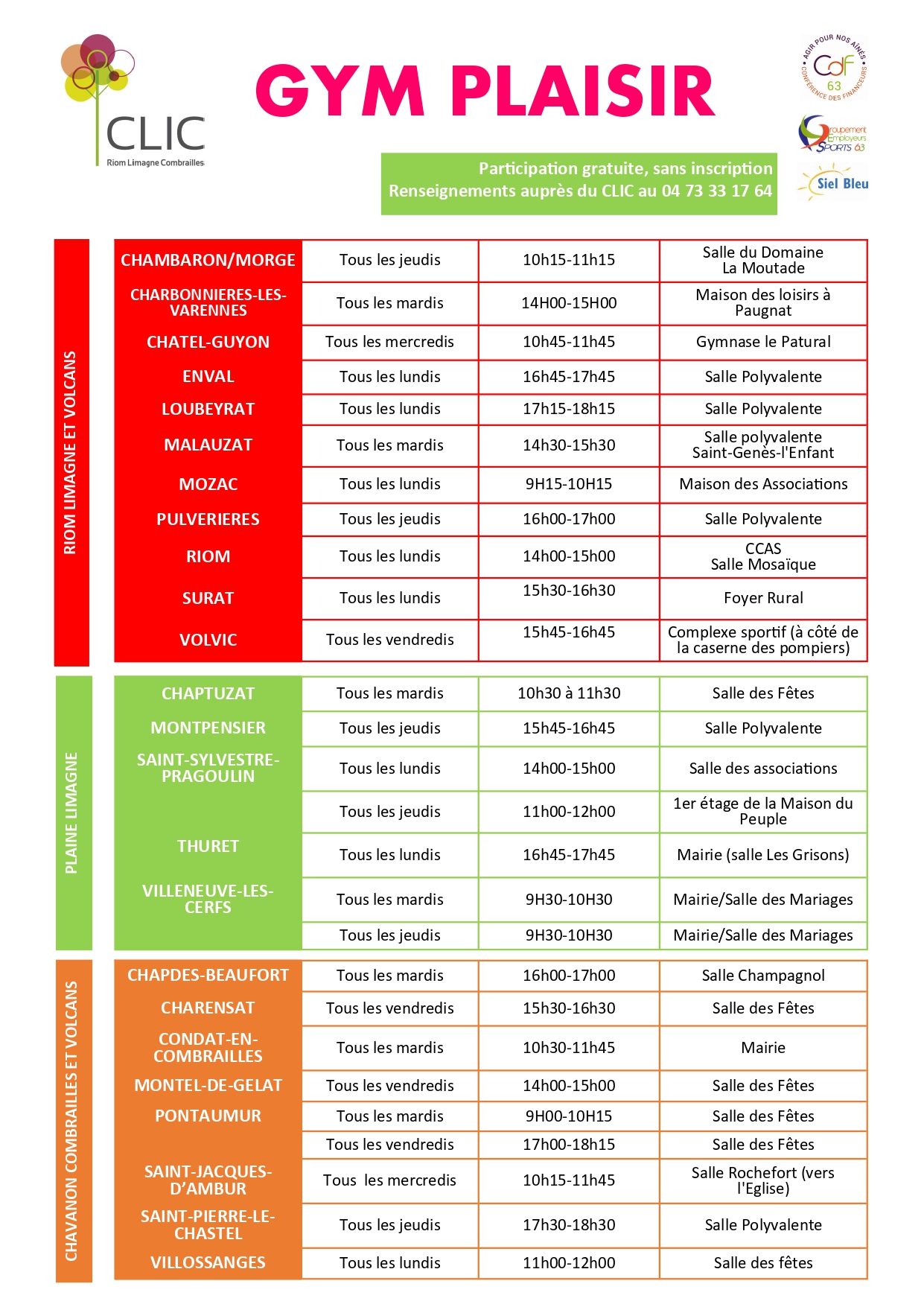 Reprise des séances « gym plaisir » à Saint-Myon le jeudi 7 septembre 2023 via le CLIC Riom Limagne Combrailles.