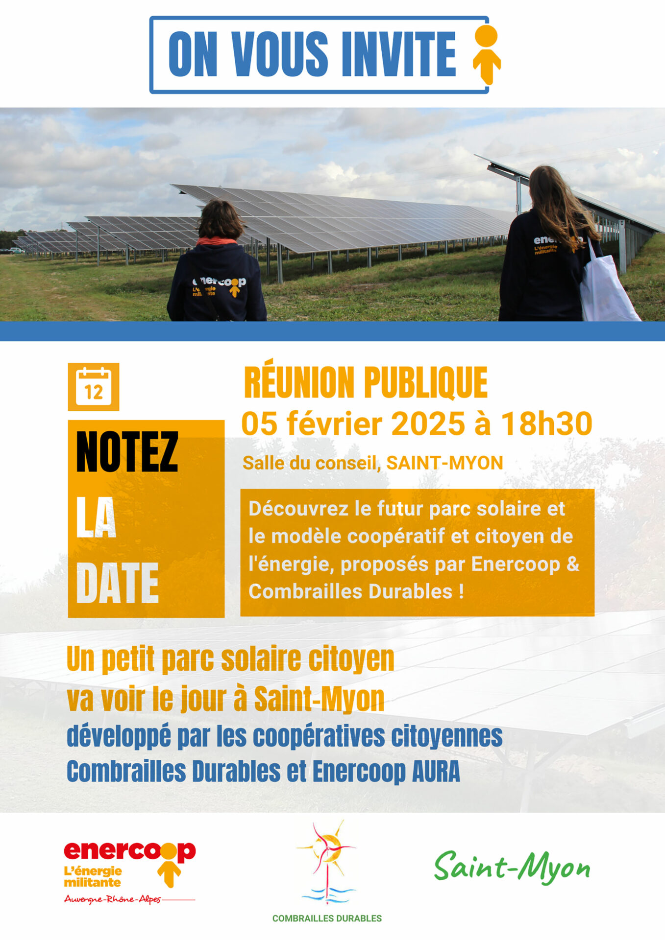 Réunion publique le mercredi 05 février 2025 à 18h30 à la salle du Conseil Municipal de Saint-Myon.
