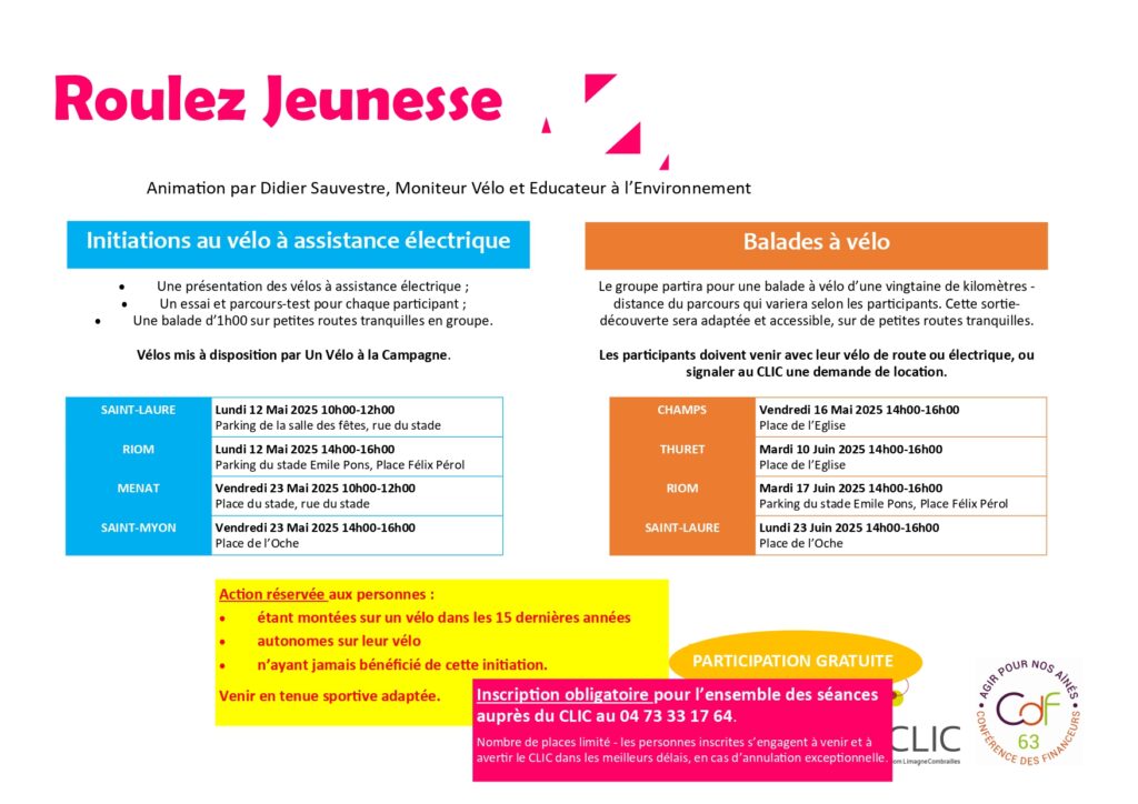 Réservation obligatoire pour l’ensemble des séances auprès du CLIC au 04-73-33-17-64